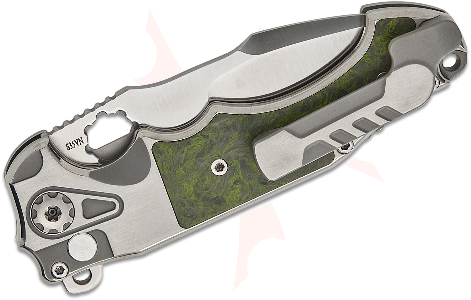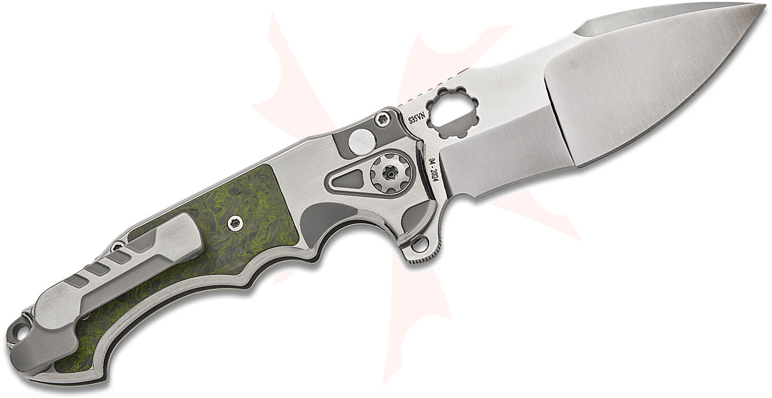 - Handle Material: Satin Titanium with Green Carbon Fiber Inlays