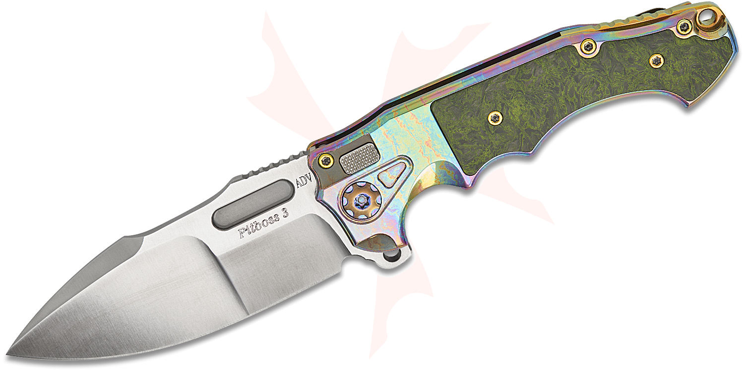 ADVMPB3ARGCFI: Mini Pitboss 3 Folding Knife - Green Carbon Fiber Iridescent Acid Rain