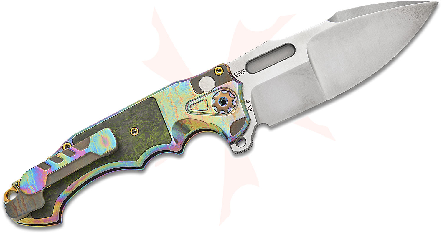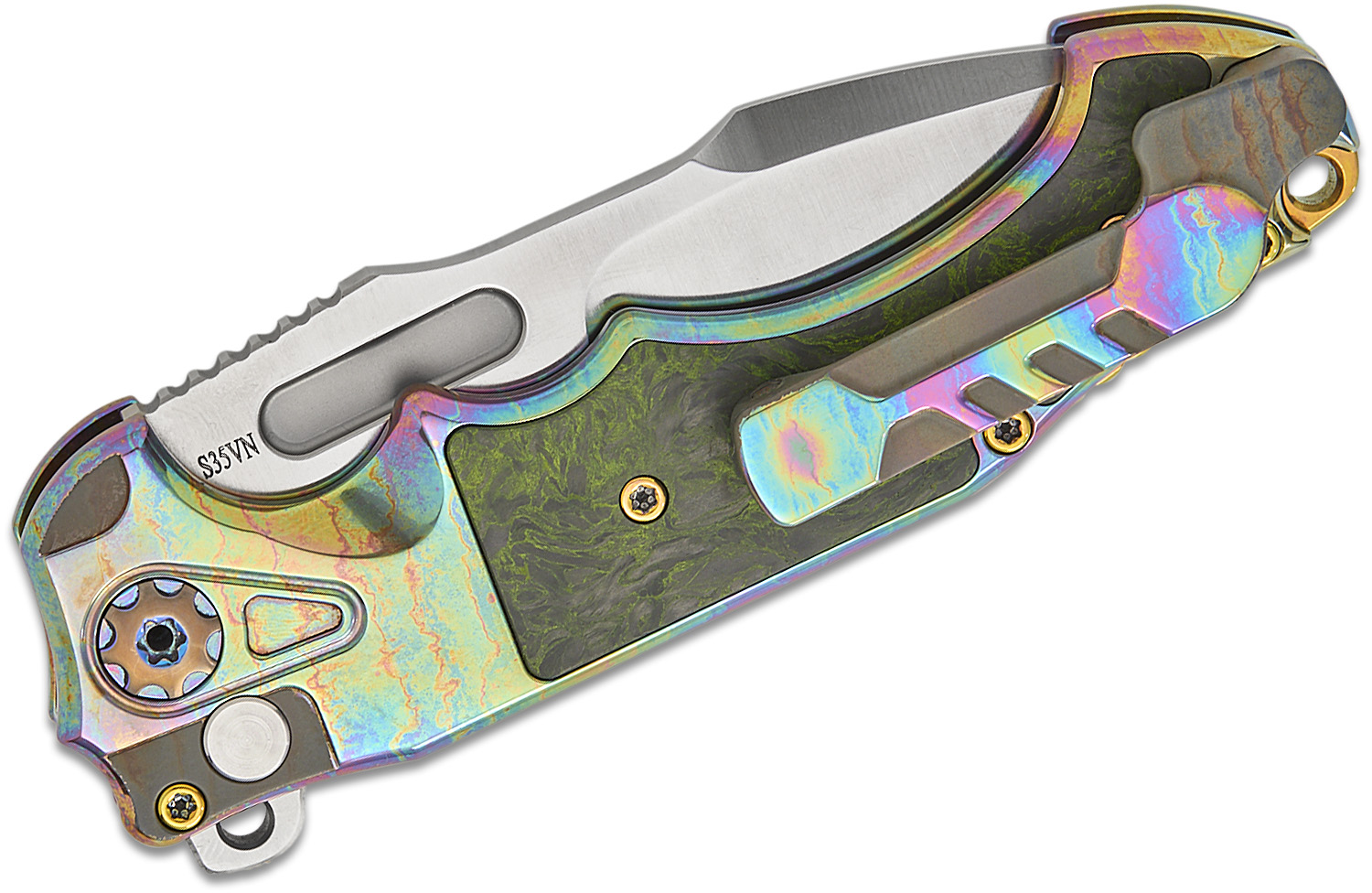 - Handle Material: Iridescent Acid Rain Titanium Handles with Green Carbon Fiber Inlays