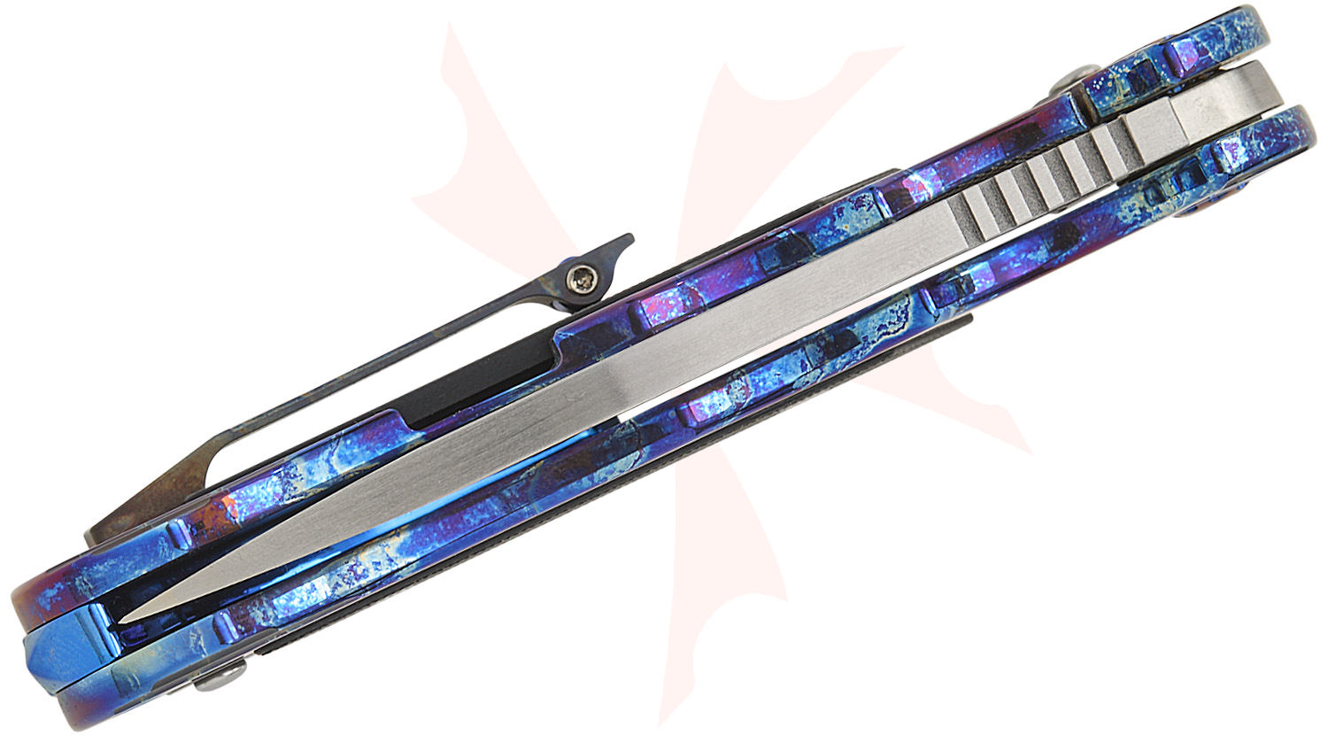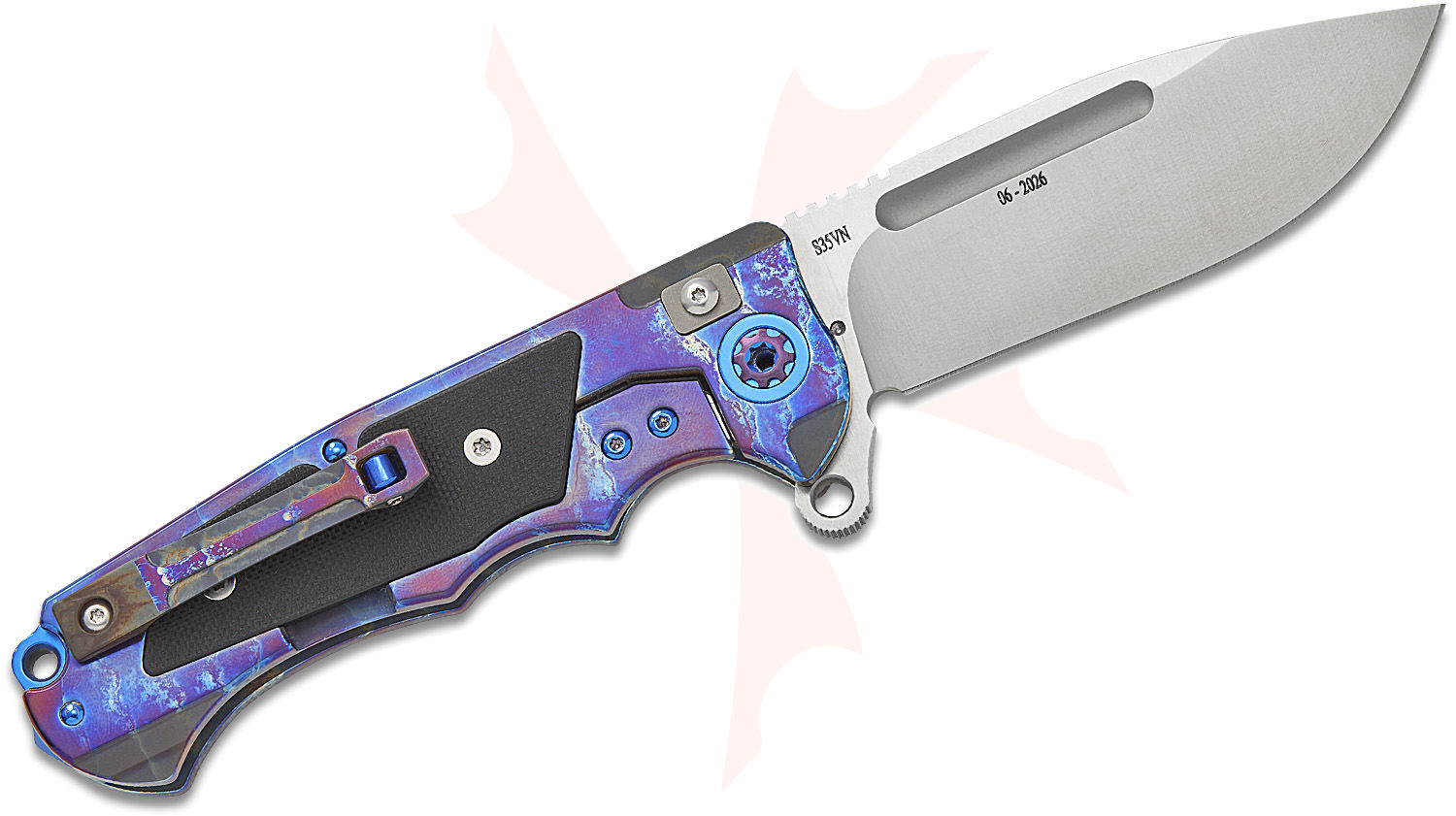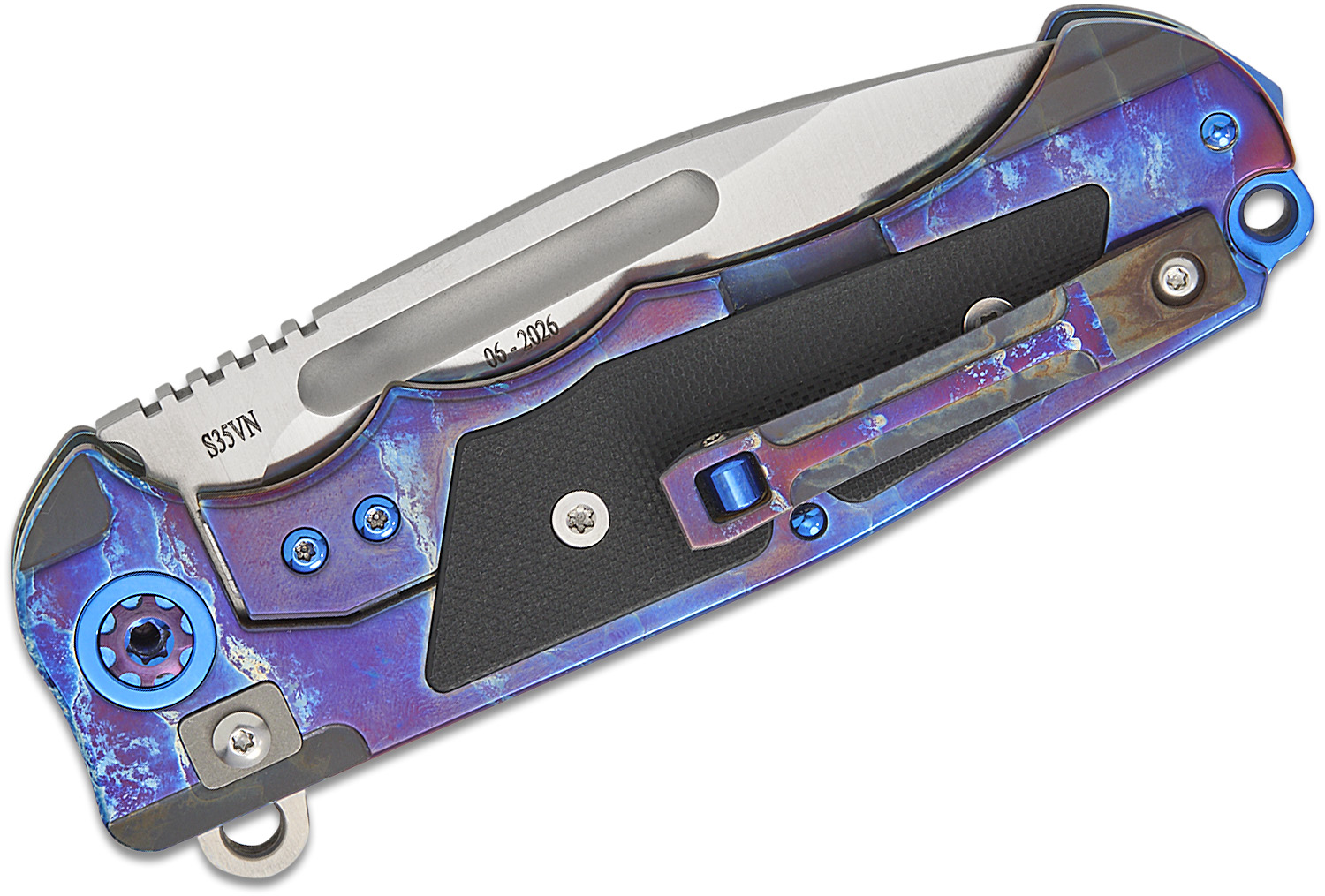 - Handle Material: Purple Acid Rain Titanium with Black G10 Inlays