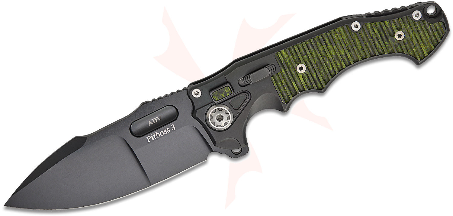 ADVPB3LBKMGCF: Pitboss 3 Large Folding Knife - Milled Green Carbon Fiber