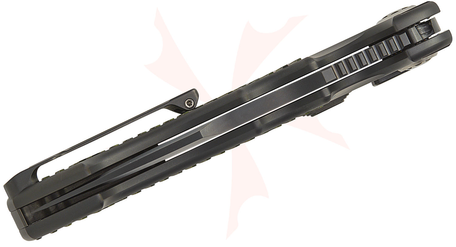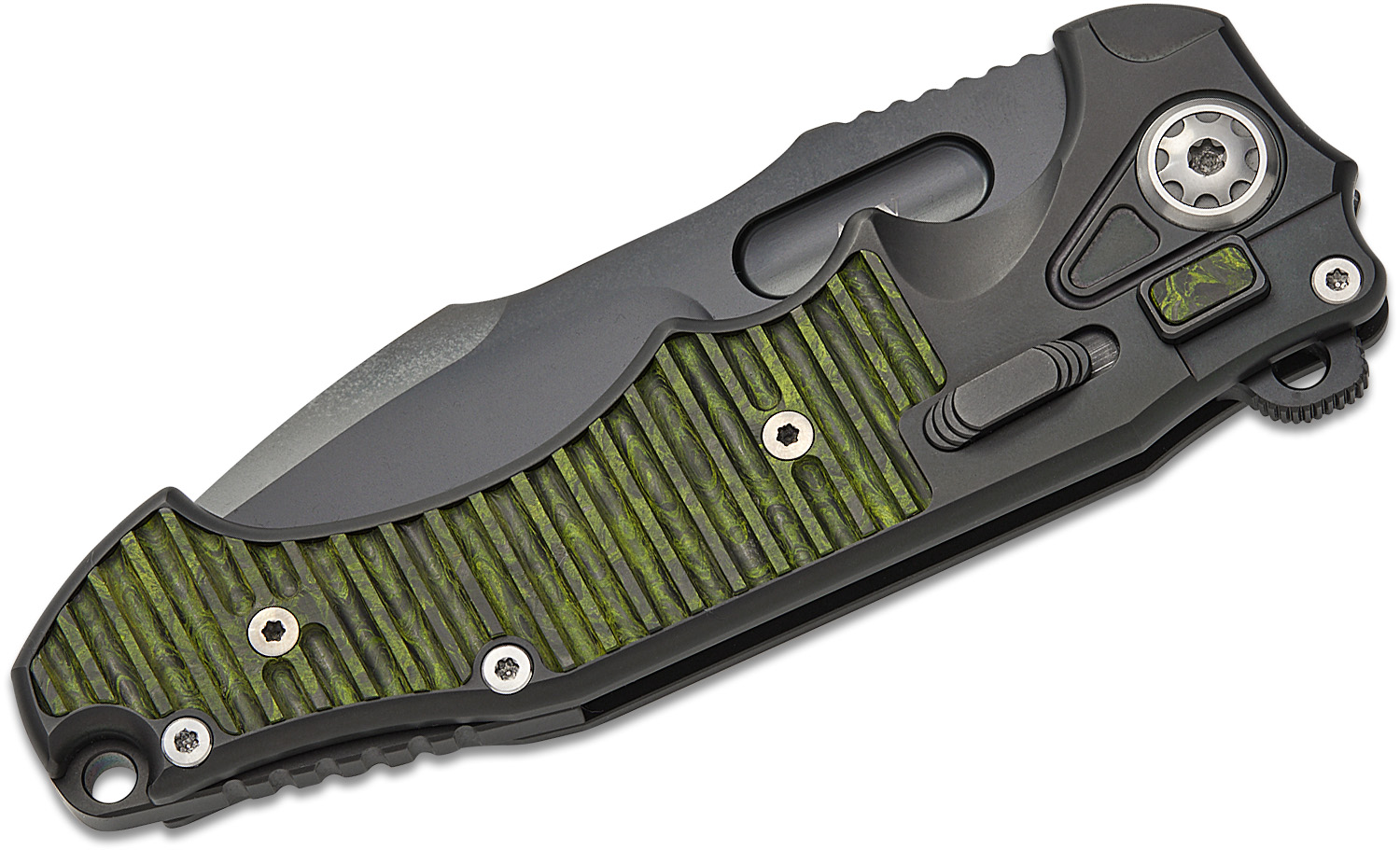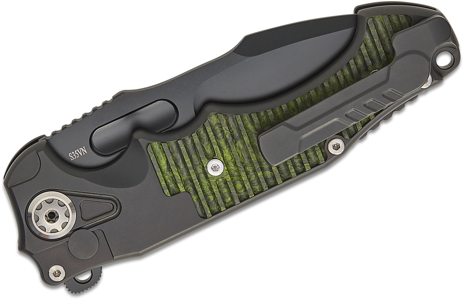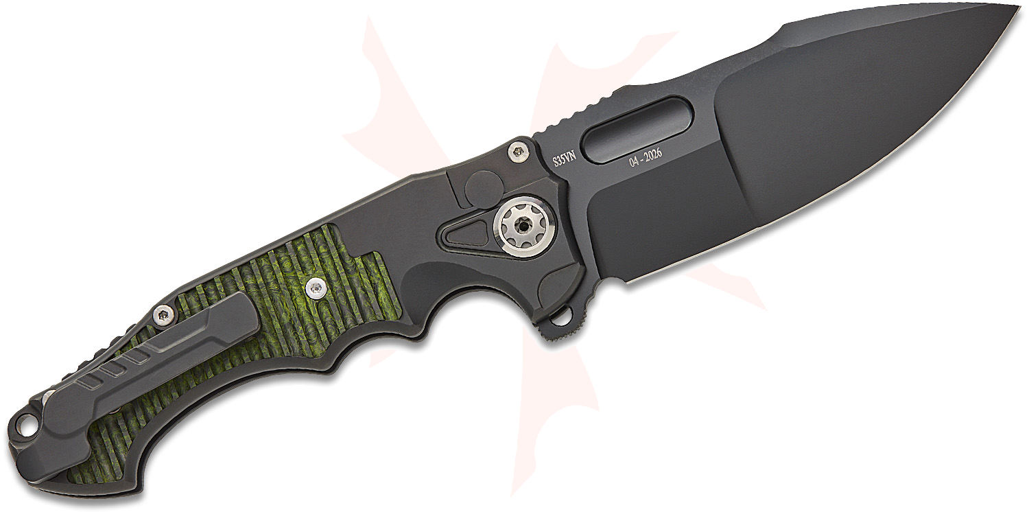 - Handle Material: Black Titanium with Milled Green Carbon Fiber Inlays