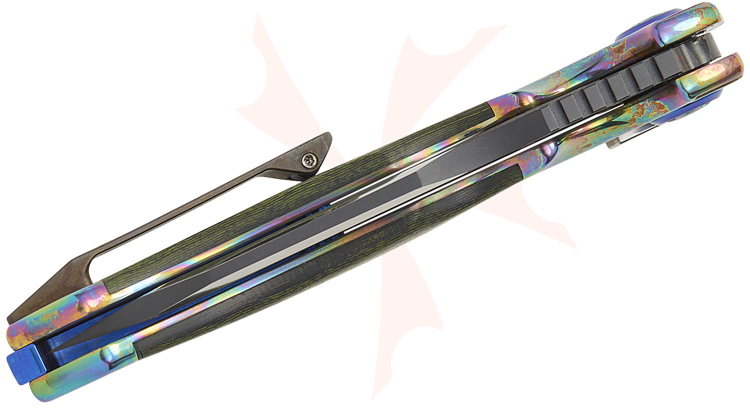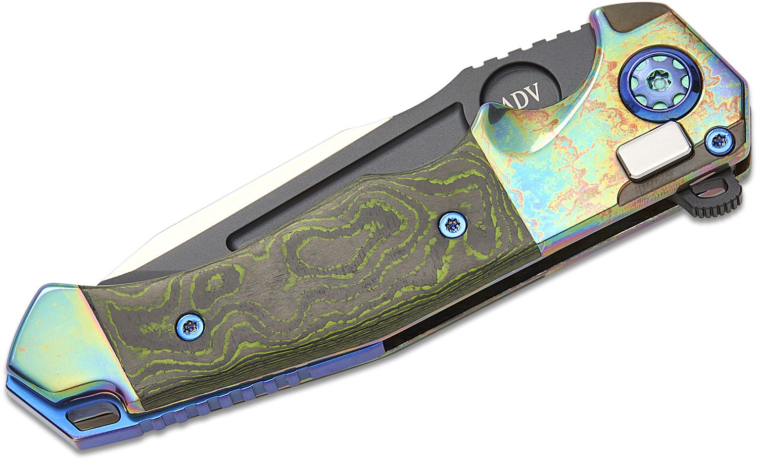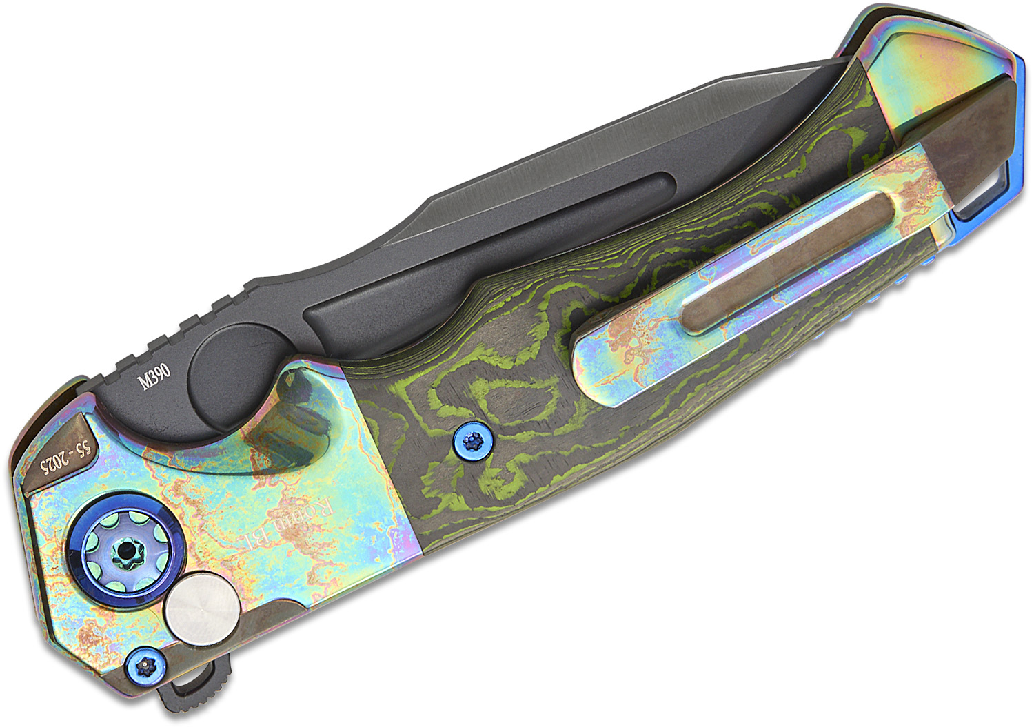 - Handle Material: Acid Rain Titanium with Jungle Wear FatCarbon Inlays