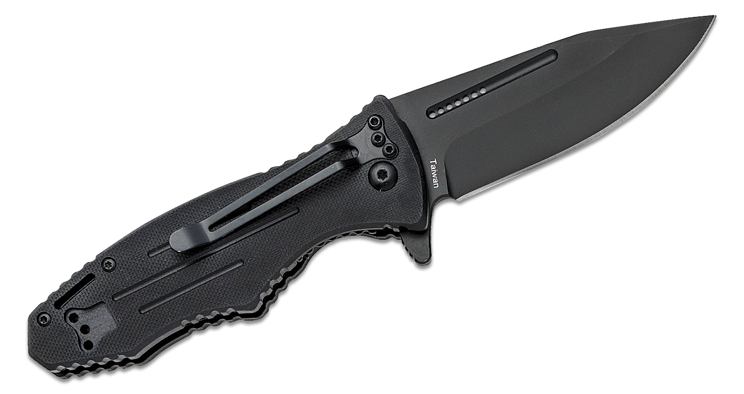 BLACKHAWK! Hornet II Assisted Flipper Knife 3.5" D2 Black Clip Point Plain Blade, Black G10 Handles, Liner Lock - BH15H201BK