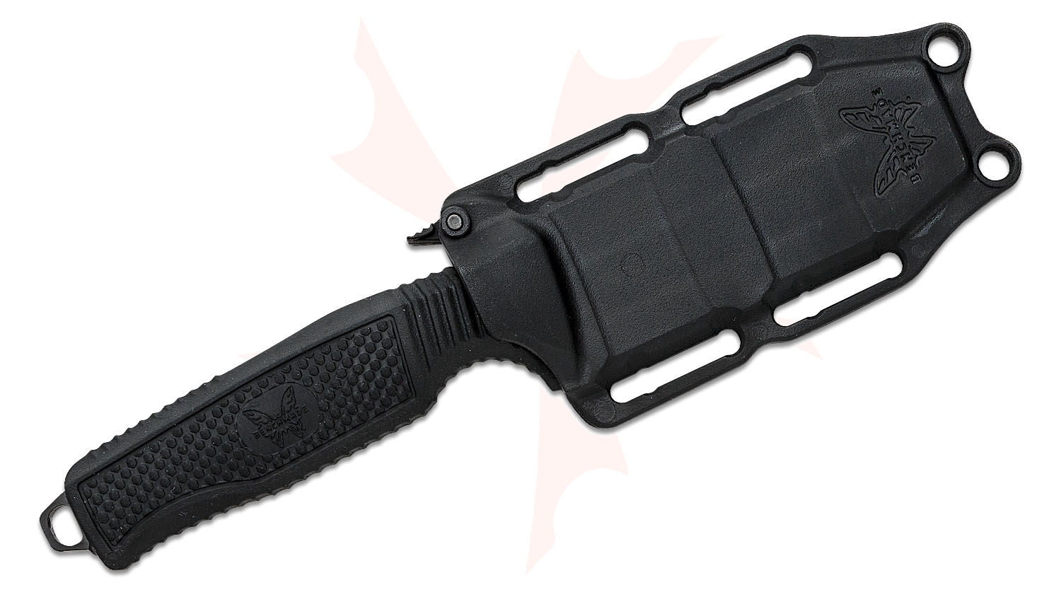 Benchmade 112SBK-BLK H2O Fixed Blade Knife 3.5" N680 Black Opposing Bevel Combo Blade, Black Rubber Handle, Injection Molded Sheath