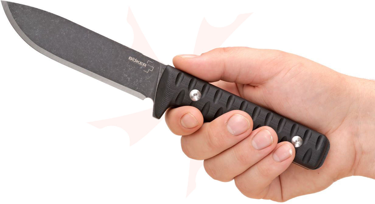 Boker Plus Bushcraft Kormoran Fixed 4.75" Black Stonewashed Blade, Black G10 Handles and Kydex Sheath - 02BO381