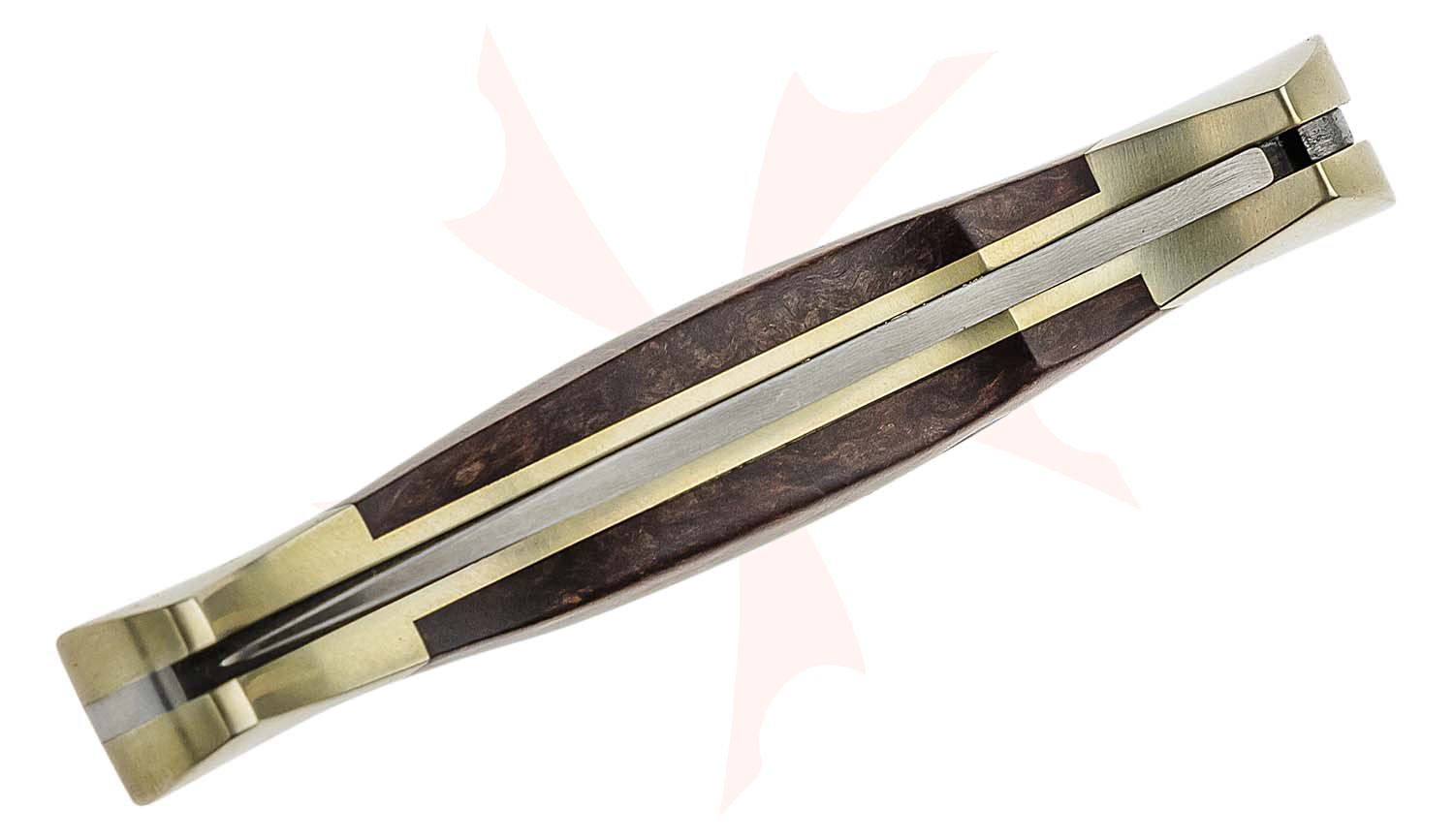 BO112202DAM: Boker Scout Folding Knife 3.11" Chad Nichols Raindrop Damascus Spear Point Blade, Stabilized Curly Birch Wood Handles