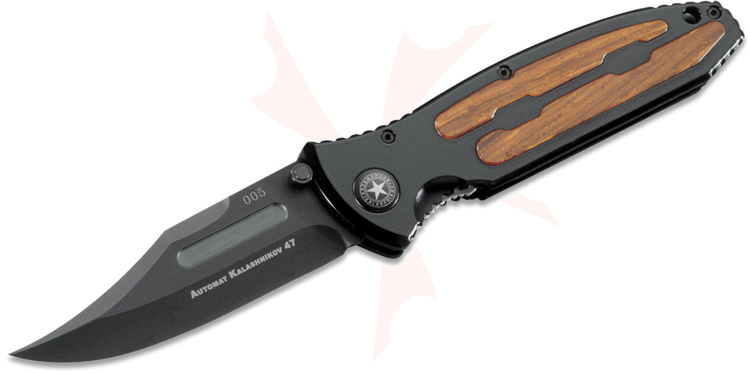 Boker Kalashnikov Folding Knife 4" Black Plain Blade, Aluminum Handles with Cocobolo Inlays, Liner Lock - 11KAL47B