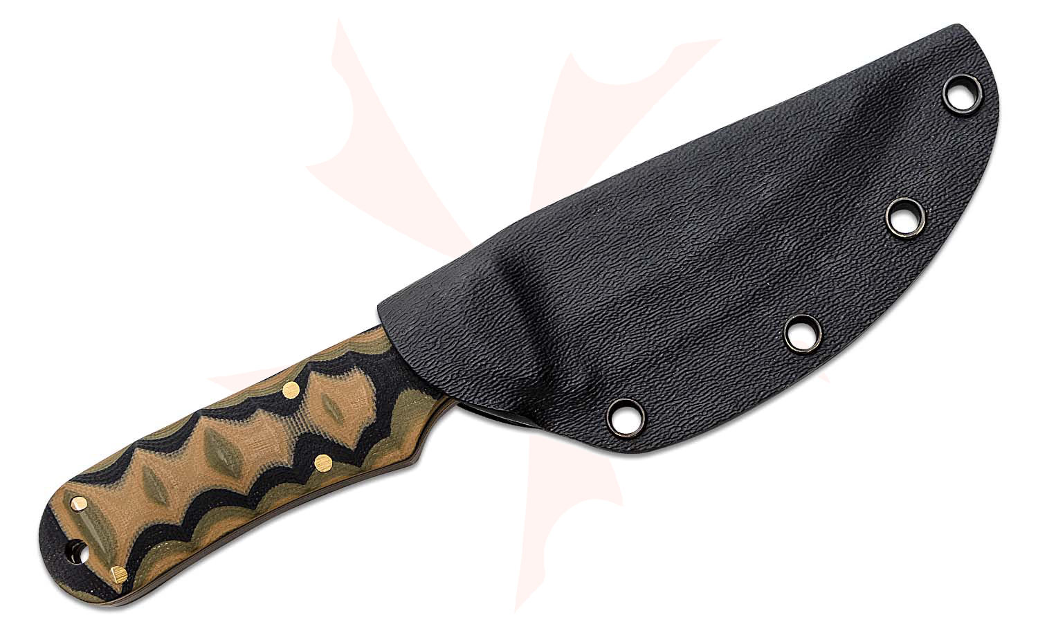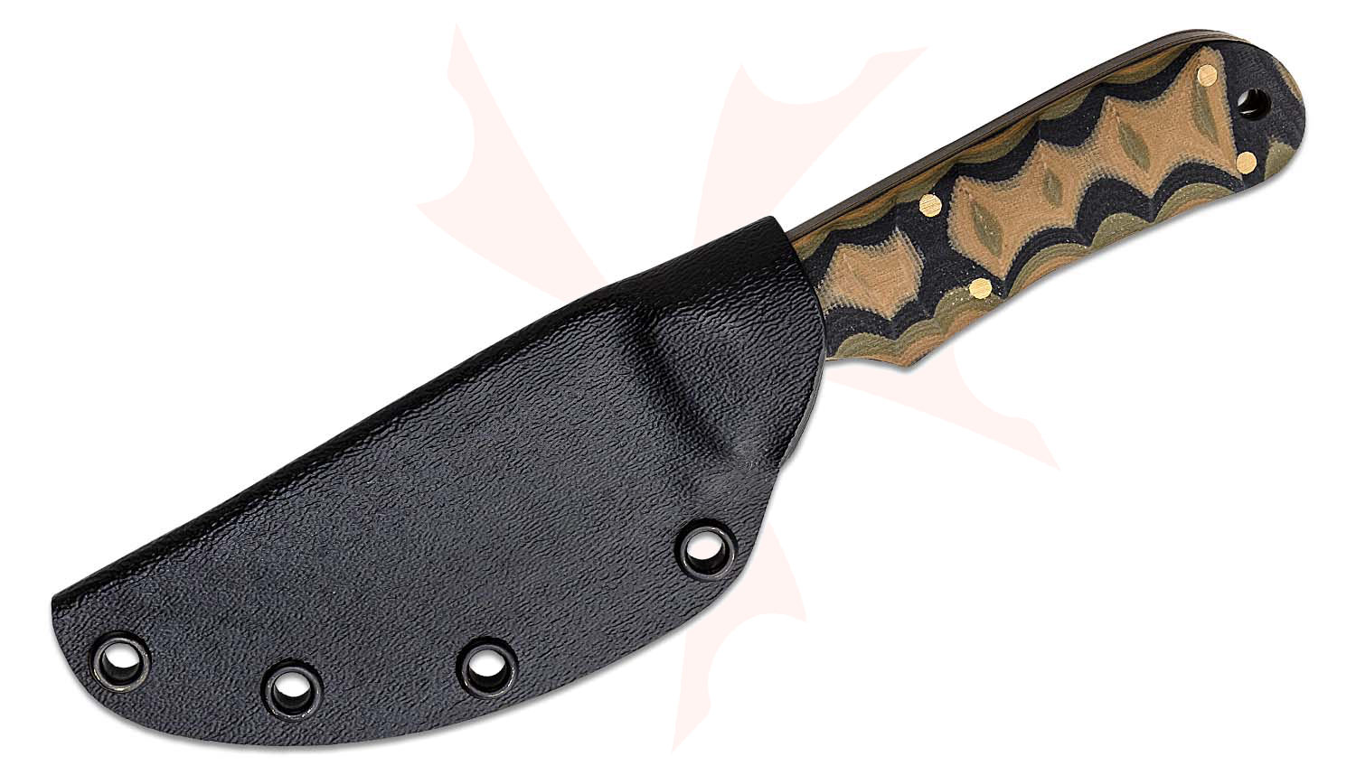The Persian was designed by Ken for the 2022 BLADE Show and we think that it should be a going-forward model. It has great qualities for EDC, utility, outdoors/hiking, and of course hunting applications. The completely rust-proof titanium blade is great for those living in hot, humid climates or who don't make caring for their blade a priority. You get a great grip on this ergonomic handle and the single finger groove works excellently for indexing during use. Includes a friction fit Kydex sheath, 'jimped thumb ramp', and lanyard hole.