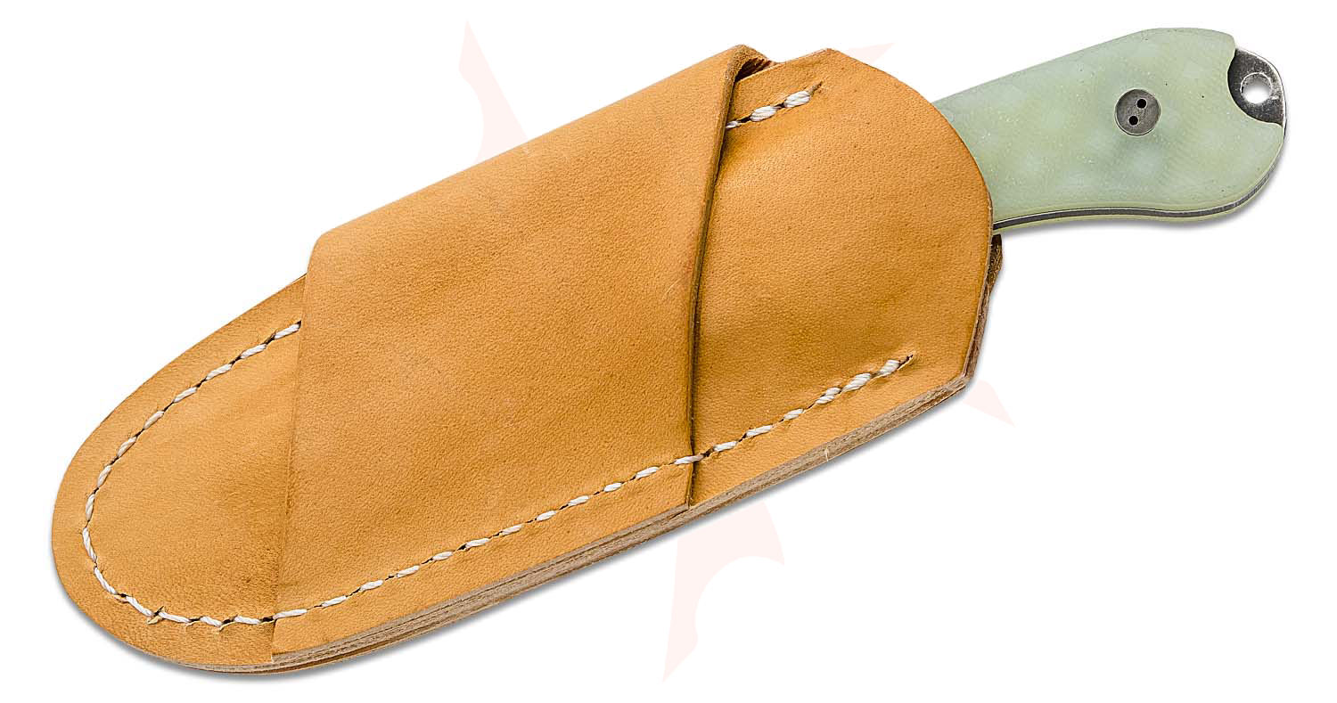 Bradford Knives Guardian3 Fixed Blade Knife 3.5" M390 Nimbus Finish False Edge Drop Point, Textured Ghost (Jade) G10 Handles, Leather Sheath - 3FE-007N
