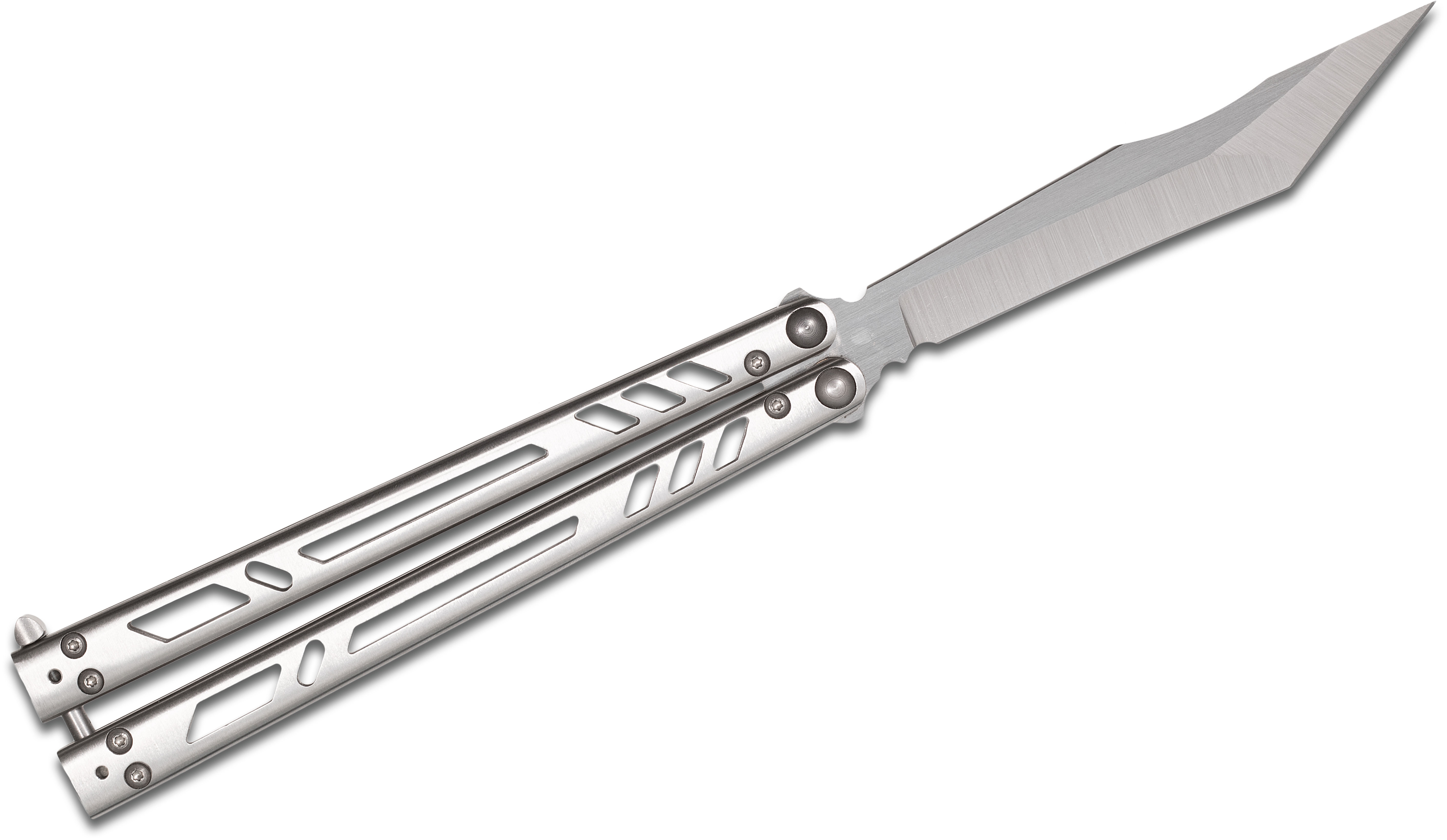The Barebones features all-stainless-steel framed handles that are skeletonized to maintain optimum balance and reduce weight. You will find that Barebones is a very neutral handling balisong. It can be flipped fast or slow and really can adapt to a variety of manipulation styles. Coupled with extended handle dimensions the weight is very well distributed.