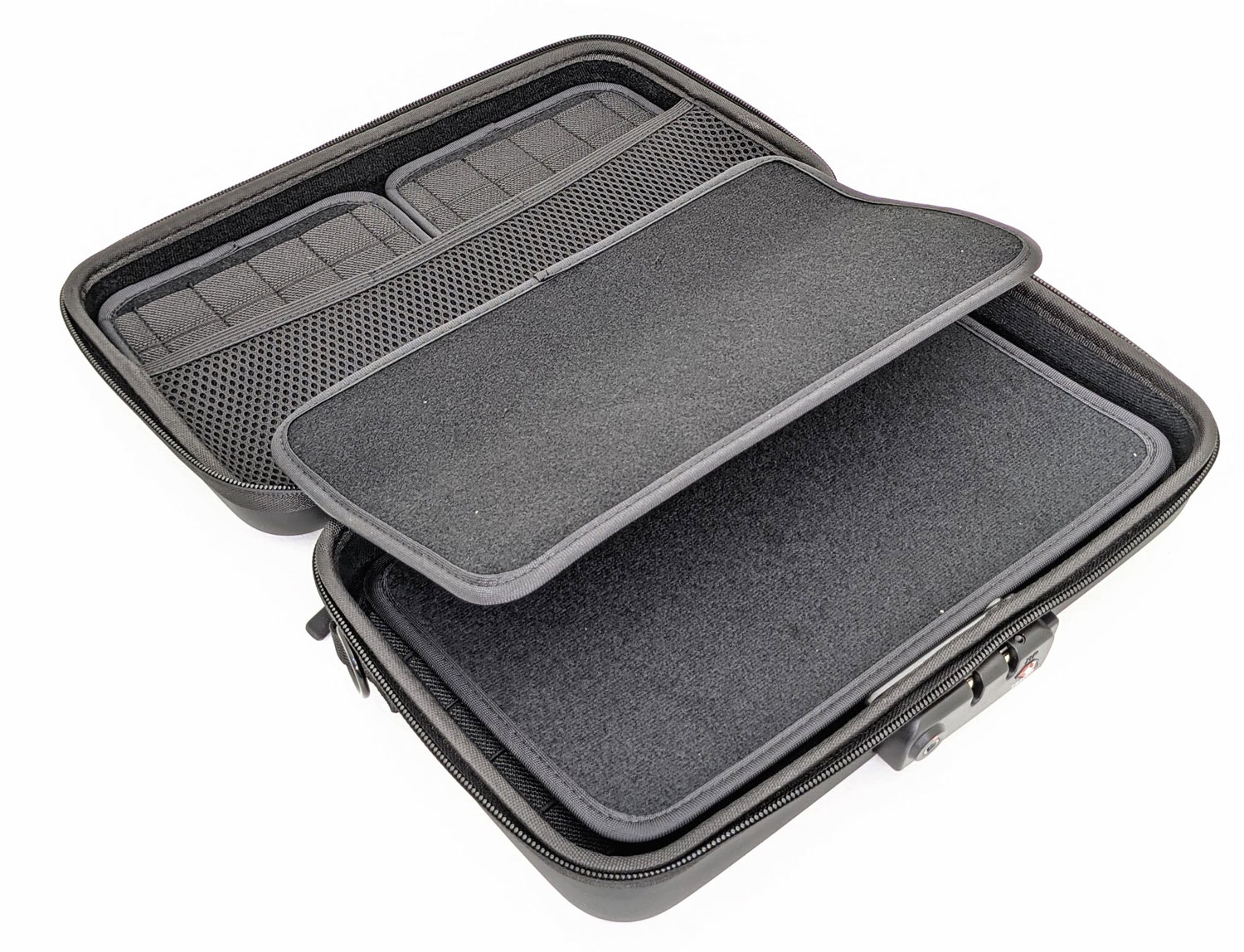 Need a bit more space? The Vault Secure offers additional height and an extra padded panel so you can fully utilize your Vault case to hold up to 21 average-sized knives and/or EDC items. In addition to the extra room, the Vault Secure offers a locking mechanism found on the outside of the case. The combination style lock securely holds both zippers in place for additional security. Should you travel with the case and TSA requires inspection, they can do so without damaging the case or lock as it is TSA-approved.