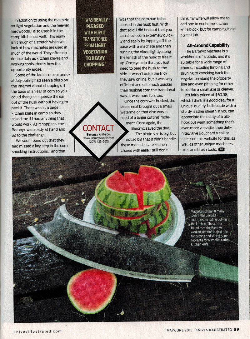 The Baryonyx Machete is the culmination of years of experience and careful design refinement. The Baryonyx (meaning "Heavy Claw") is one of the few machetes on the market designed specifically for use in the North American temperate zones. The stock edge is tuned for rough "survival"-type use and performs quite well under a litany of chores in the backwoods or around the campsite. This machete was featured for a large spread in Knives Illustrated and is manufactured by Condor Tool & Knife in El Salvador.