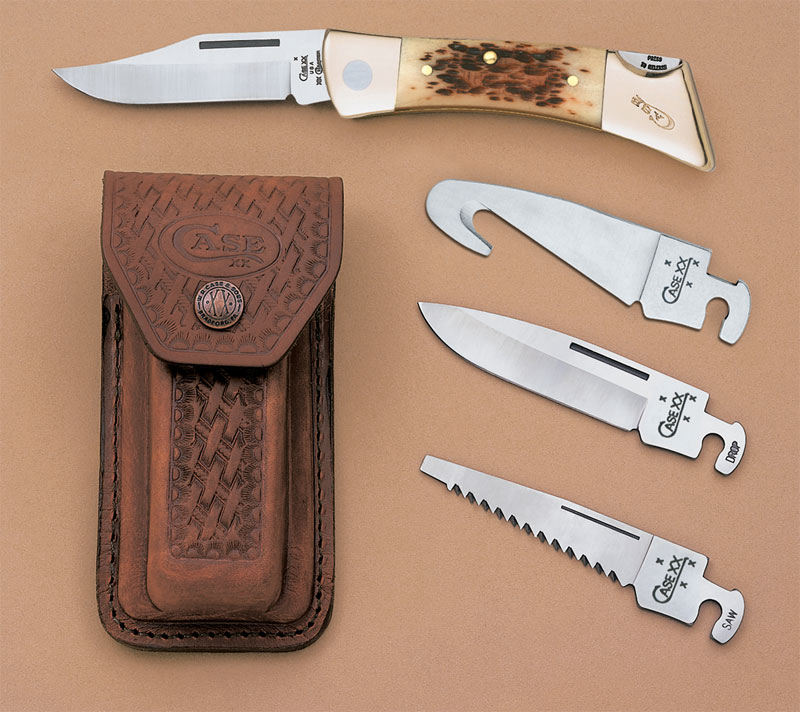 Case Amber Bone XX-Changer Lockback with Gut Hook 5" Closed (XX-CHANGER SS), Leather Sheath - 00110