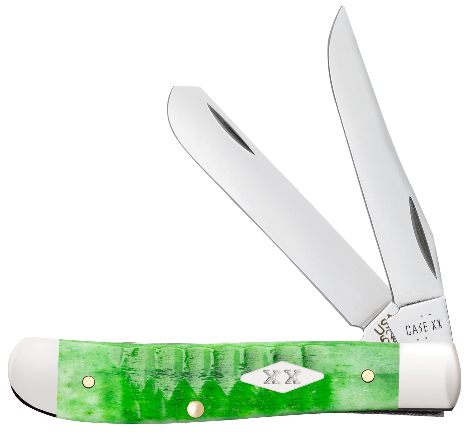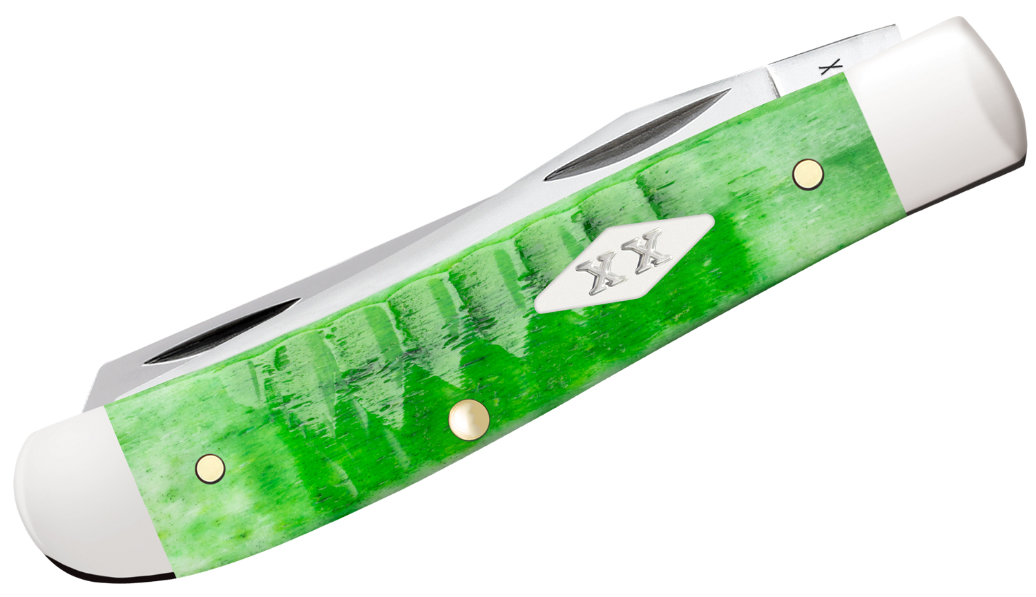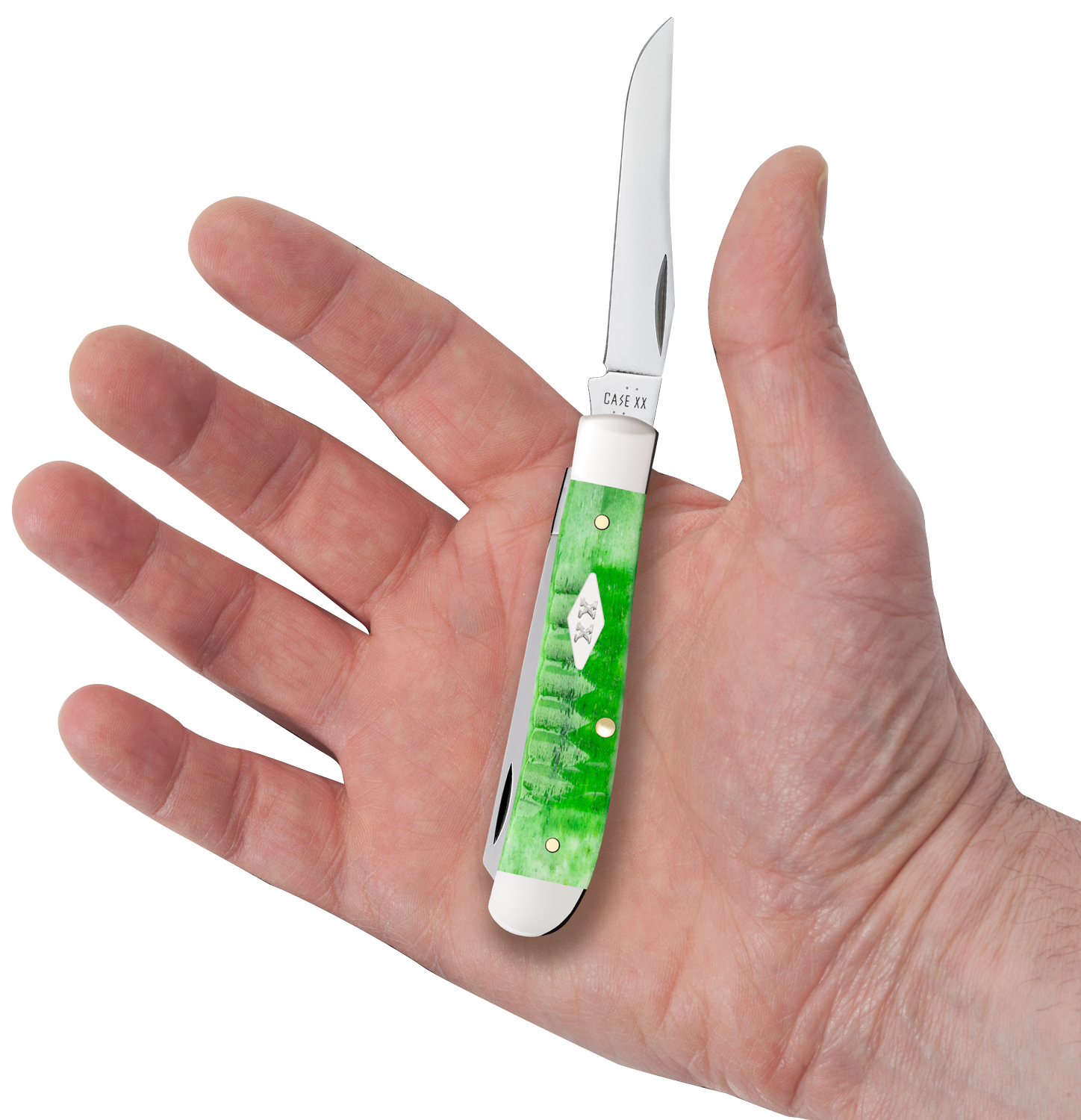 Case Gator Jig Bright Green Bone Mini Trapper Pocket Knife 3.5" Closed (6207 SS), Slipjoint (non-locking) - 11441