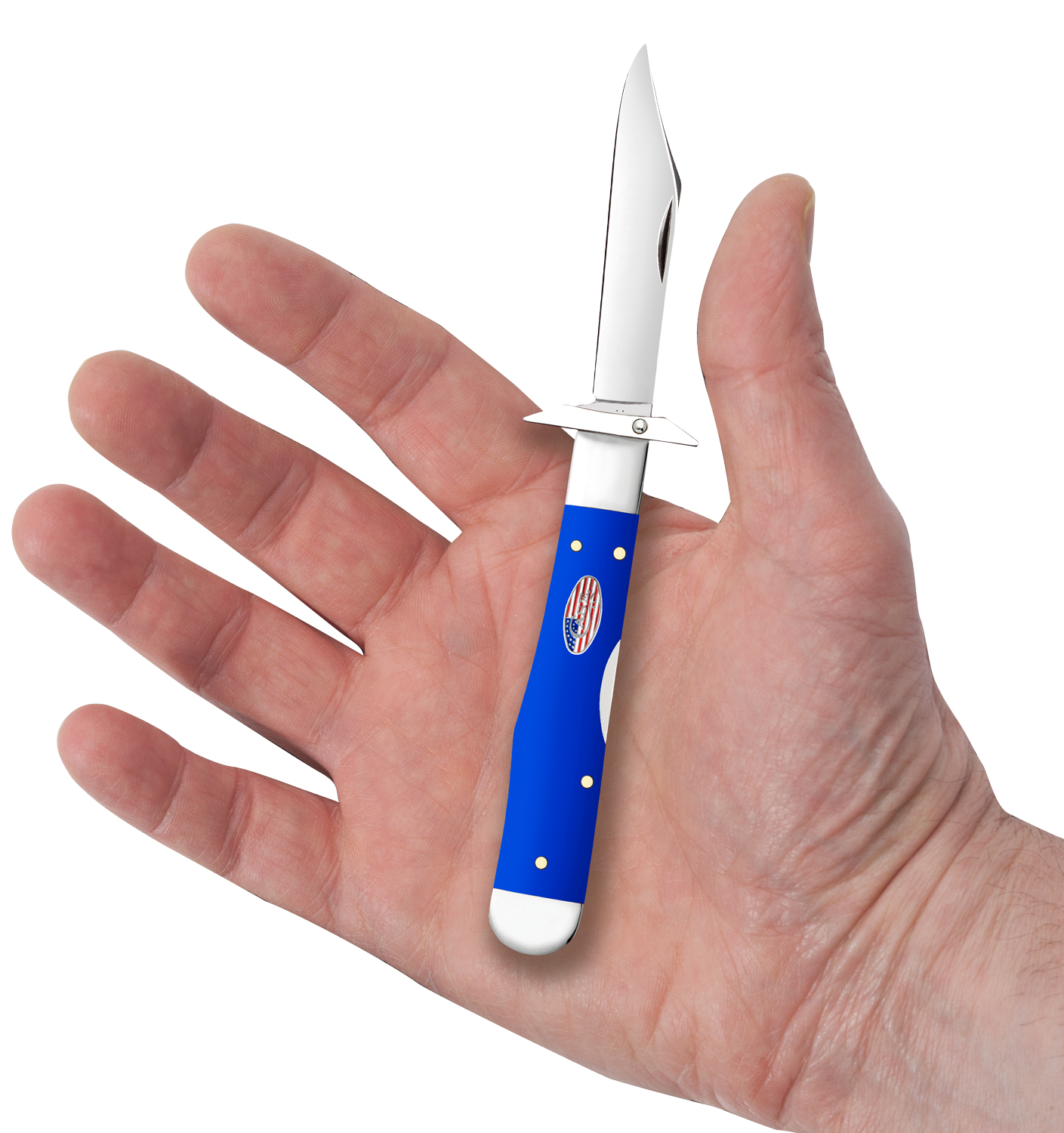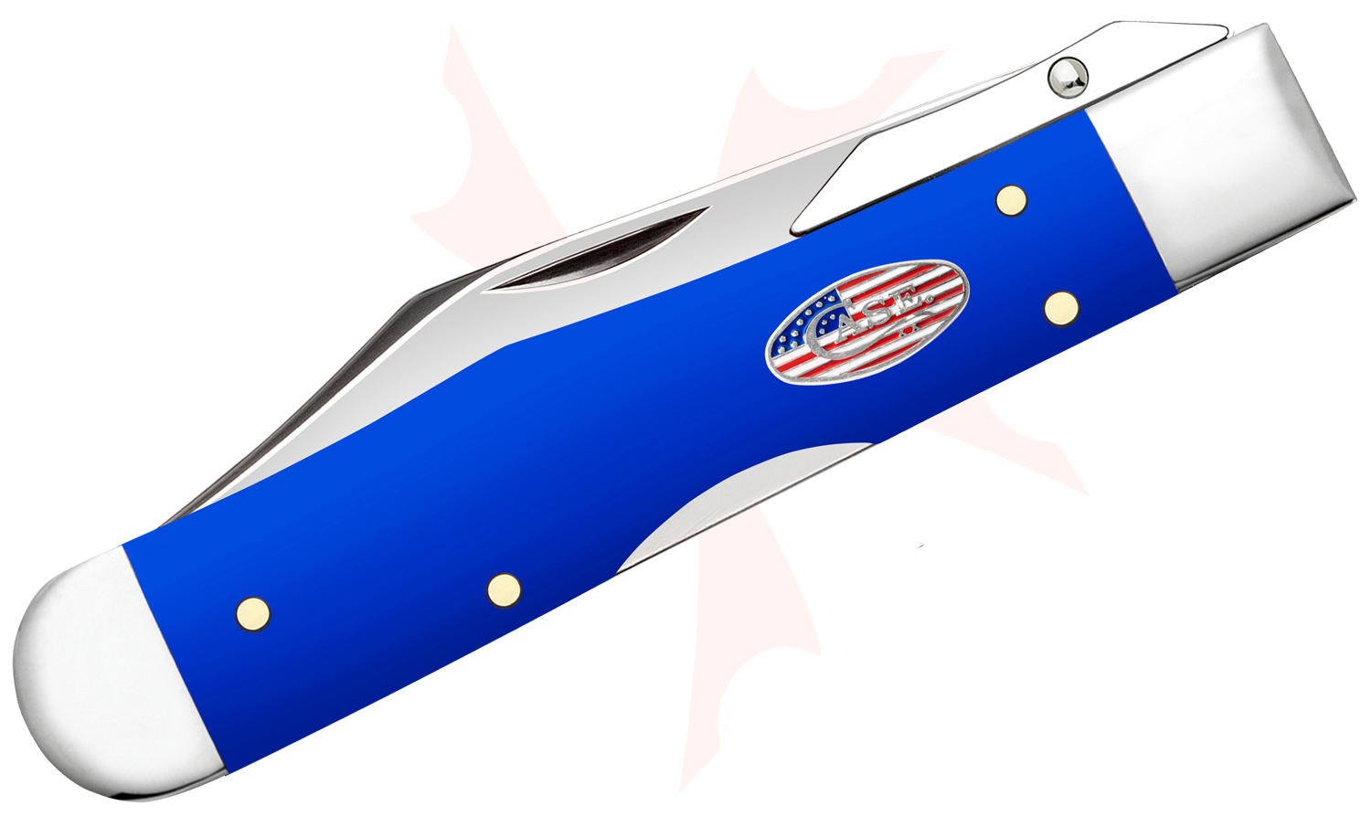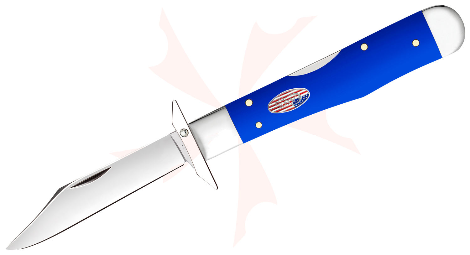 - Smooth Royal Blue Synthetic handle; American Flag Case Oval Shield