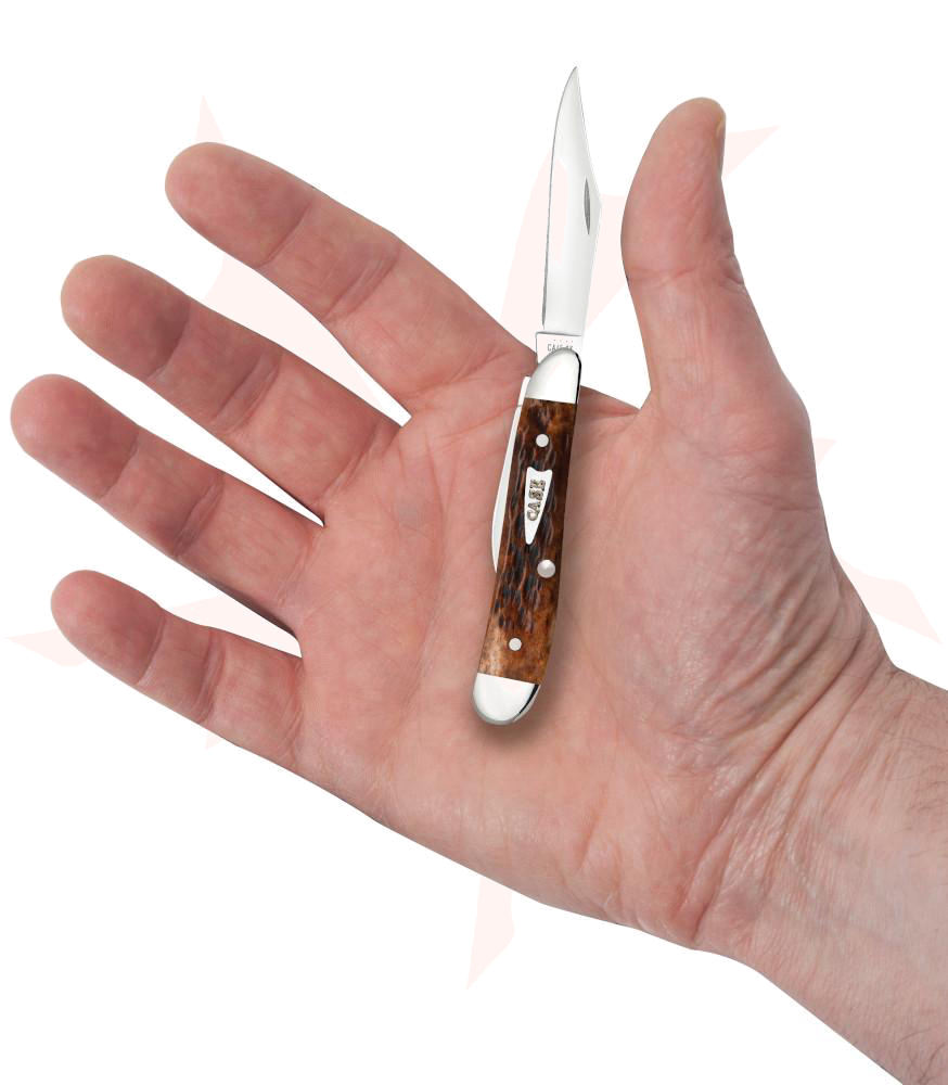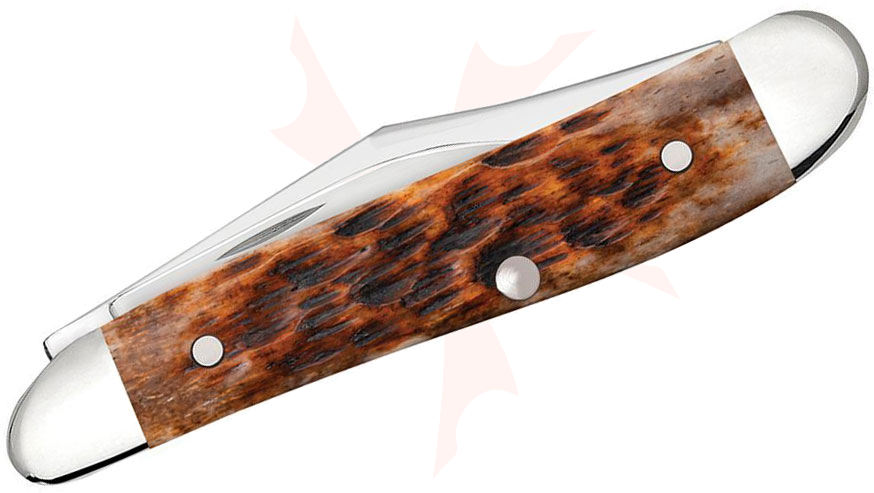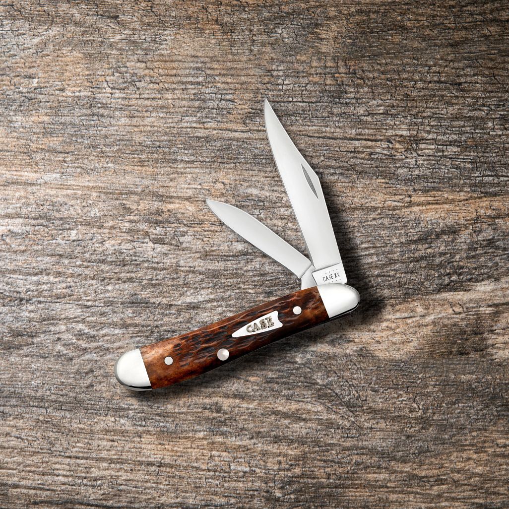 The earthy brown bone handles with Case's popular peach seed jigging create a classic look on a timeless Case knife. Peanut knives get their name due to their small petite size, fitting discretely and conveniently in a pocket. This durable folding knife has two full-length blades, the Clip blade, and the pen blade. The Clip blade is commonly used as a multi-purpose blade and preferred for detail work while the Pen blade is great for light work. This knife is constructed with Case Tru-Sharp stainless steel which is a special high-carbon steel that helps the blades hold an edge longer than conventional steel. It also offers extraordinary blade strength and corrosion resistance.