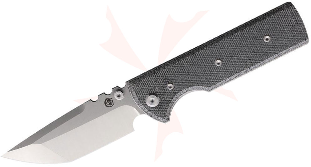 Chaves Knives NTAK Blue Label Liner Lock Flipper Knife 3.625" Elmax Belt Satin Compound Tanto Blade, Black Micarta Handles - NTAK Tanto
