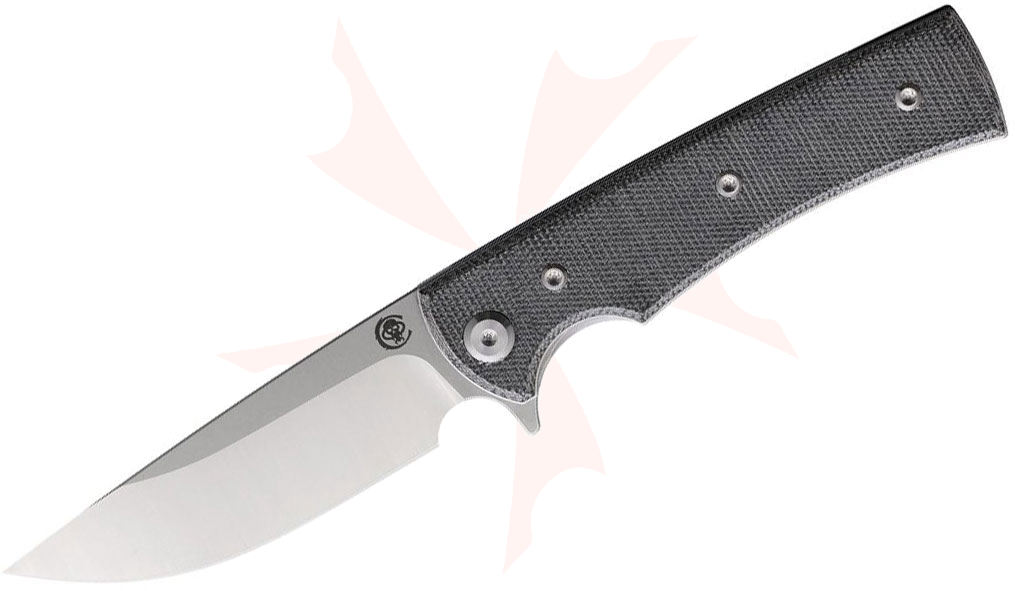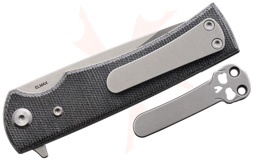 Chaves Knives Liberation Street Blue Label Liner Lock Flipper Knife 3.375" Elmax Belt Satin Drop Point Blade, Black Canvas Micarta Handles - Liberation Street Drop Point