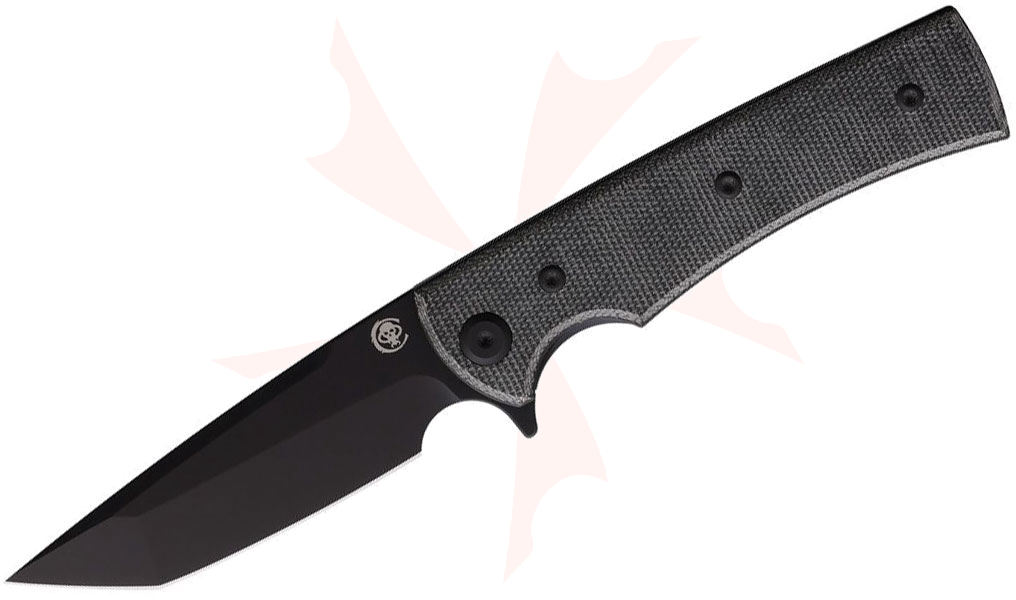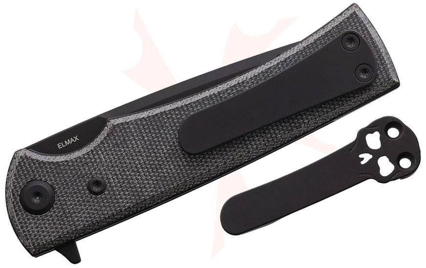Chaves Knives Liberation Street Blue Label Liner Lock Flipper Knife 3.375" Elmax Black PVD Tanto Blade, Black Canvas Micarta Handles - Liberation Street Tanto