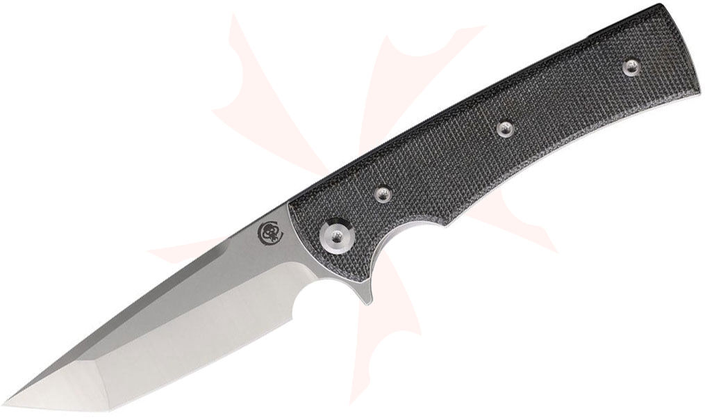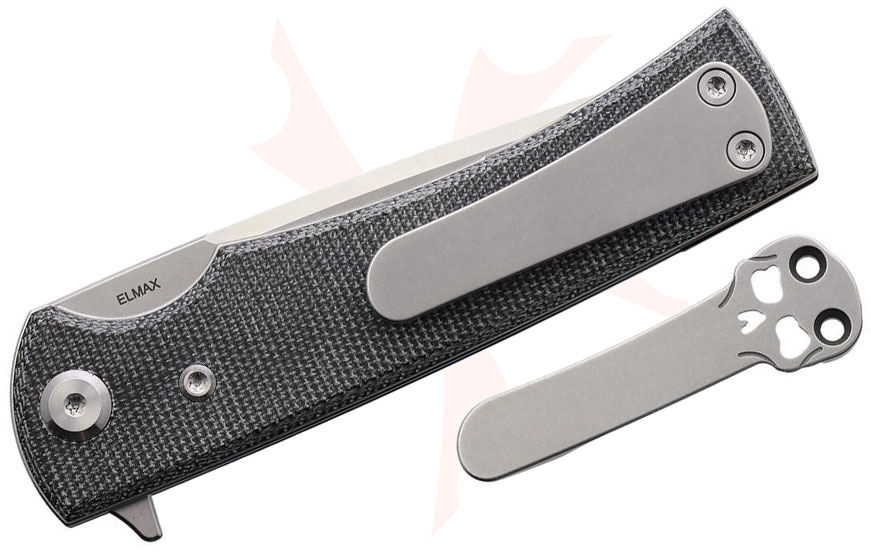 Chaves Knives Liberation Street Blue Label Liner Lock Flipper Knife 3.375" Elmax Belt Satin Tanto Blade, Black Canvas Micarta Handles - Liberation Street Tanto