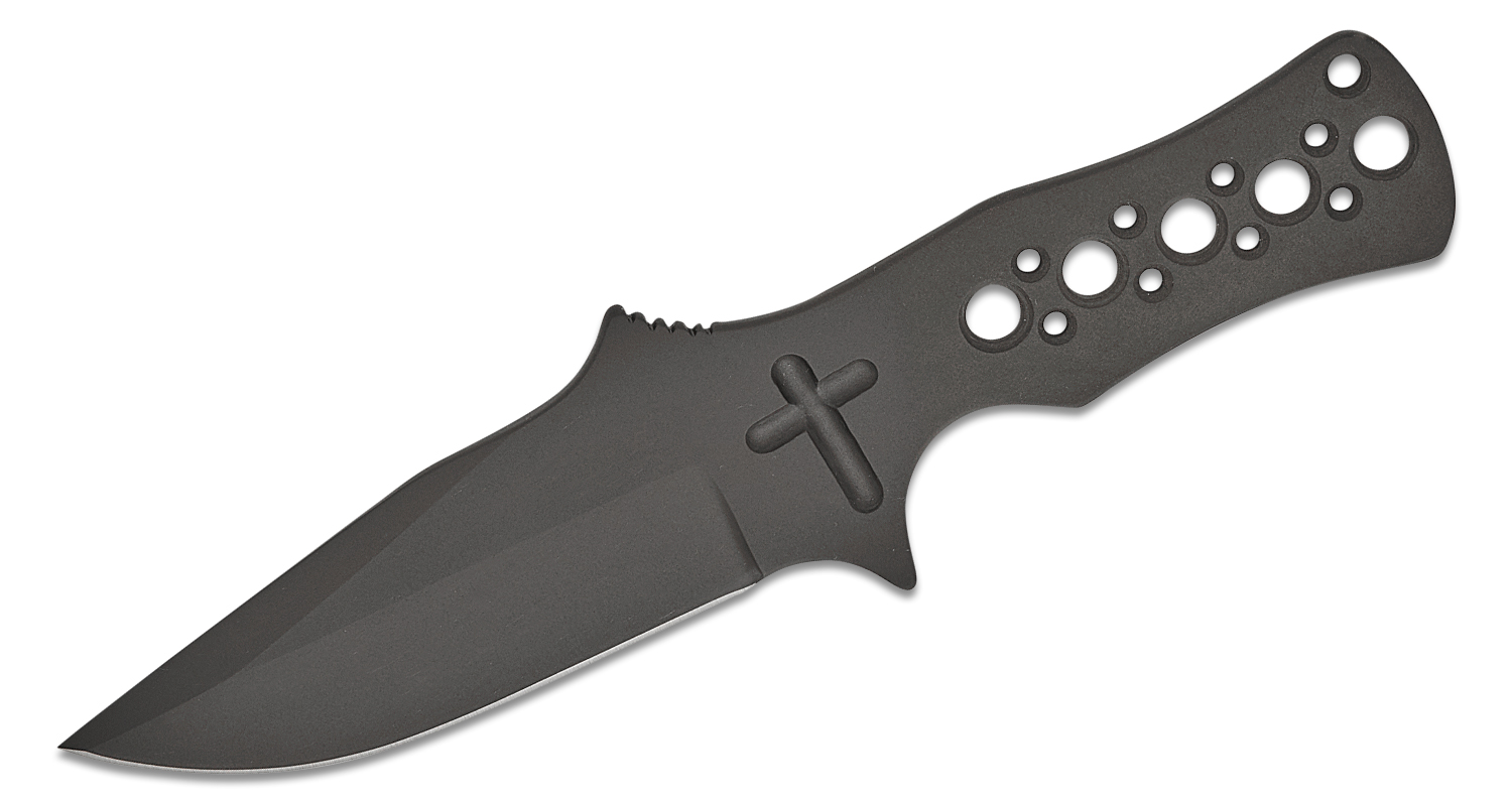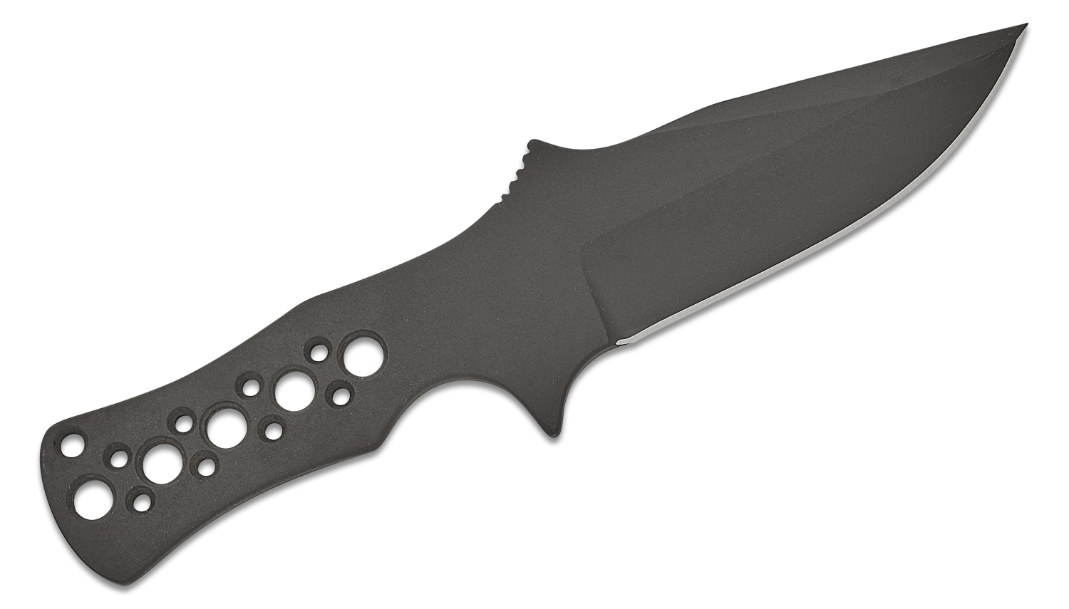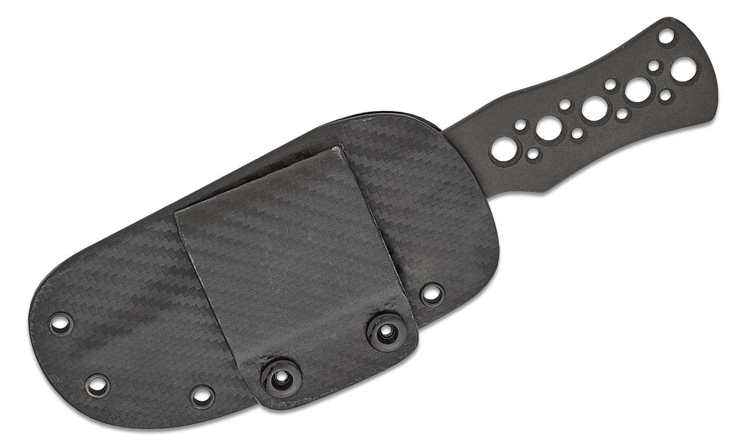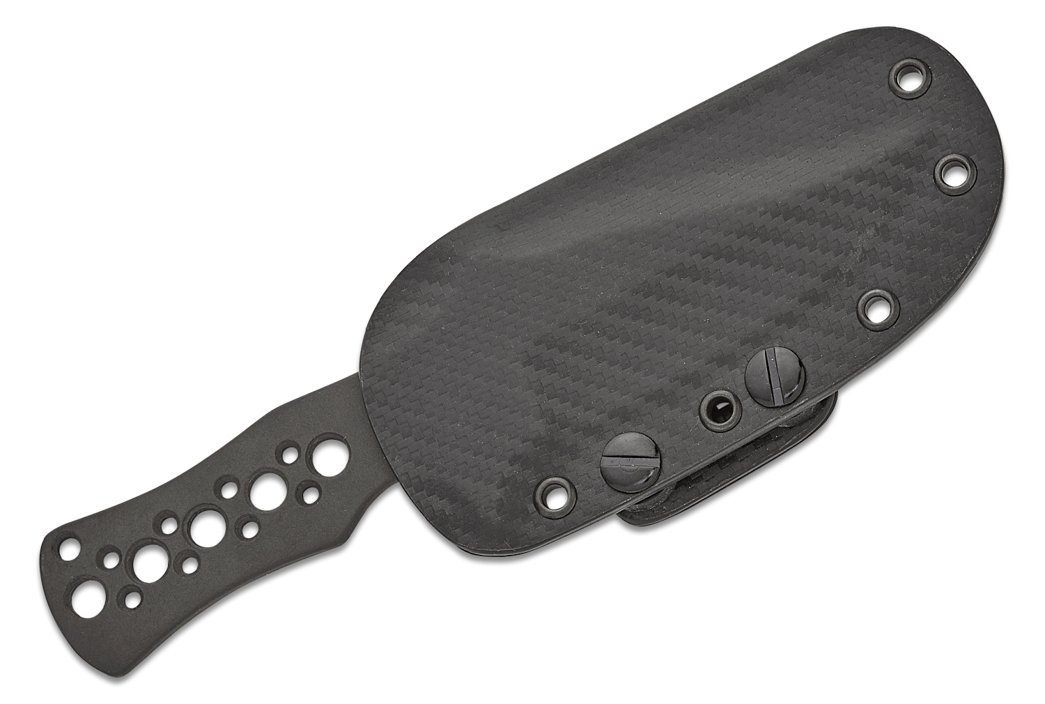 Crawford Custom Stealth Fixed Blade Neck Knife 3.75" CPM-S30V Midnight Black Cerakote Drop Point Blade and Skeletonized Handle, Kydex Sheath