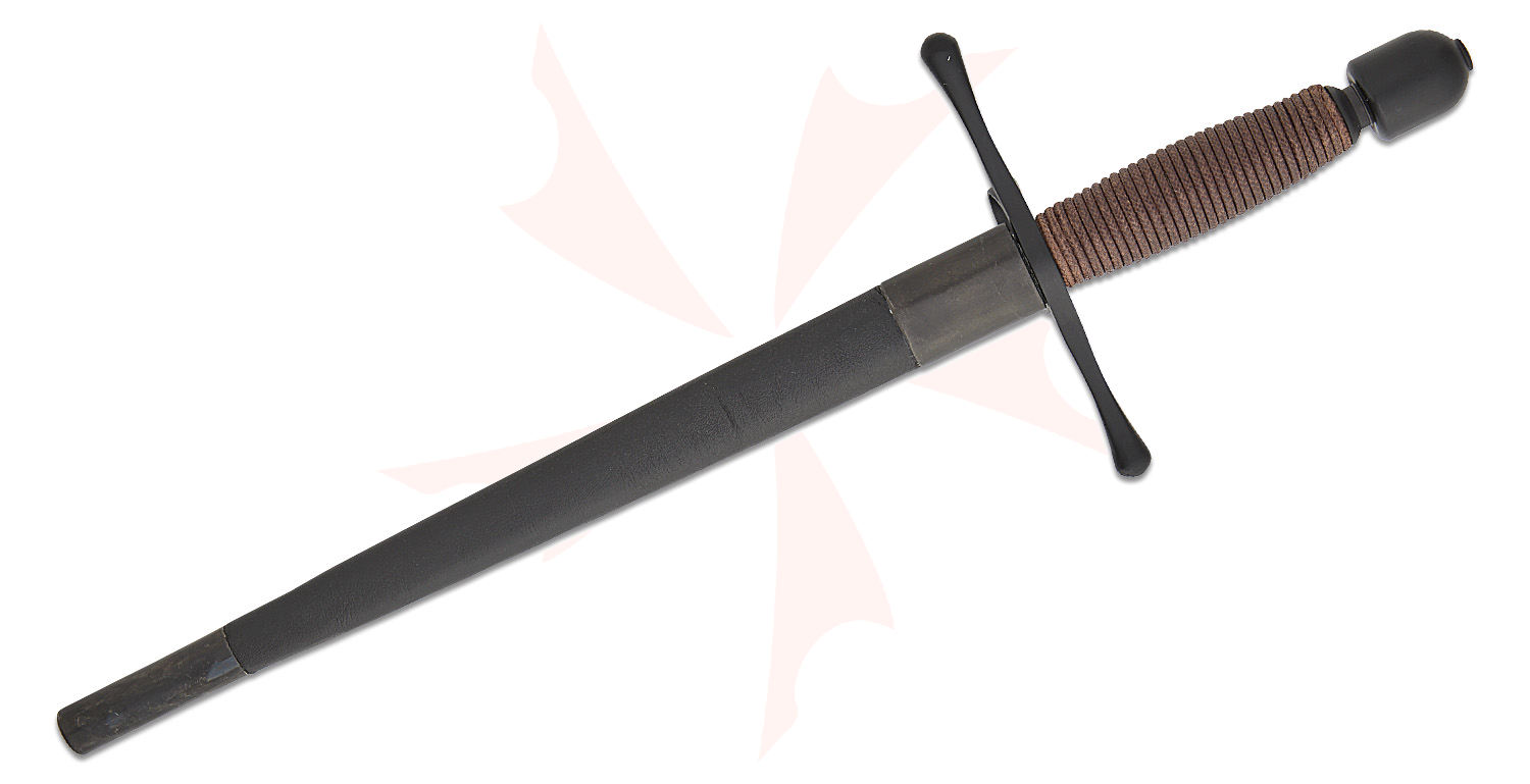 CAS Iberia Kingston Arms SM36241 Main Gauche Dagger 11" 1566 Carbon Steel Blade, Cord Wrapped Handle with Black Guard, Black Leather Wrapped Sheath
