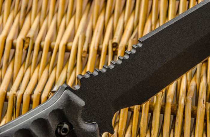 , a tactical training facility located in Missouri, where he and his team of former SOF (Special Operations Forces) instructors share their wealth of knowledge with the public.The DAGR is a tactical knife with an abundance of functional features. Built on the principles of stealth combat, this knife has a dark and deadly profile. The black coated 1095 carbon steel blade measures in at 5.75" long, and has a partially serrated belly for cutting more fibrous materials. The tanto style blade has a forward cutting edge and a tip that easily penetrates its target. Powell's DAGR has G10 handles that are milled to improve grip. Below the blade is a finger choil that really lets you choke up on the blade. The full tang continues past the handles to create a lanyard hole that doubles as a crusher. The DAGR comes with a very durable molded sheath.