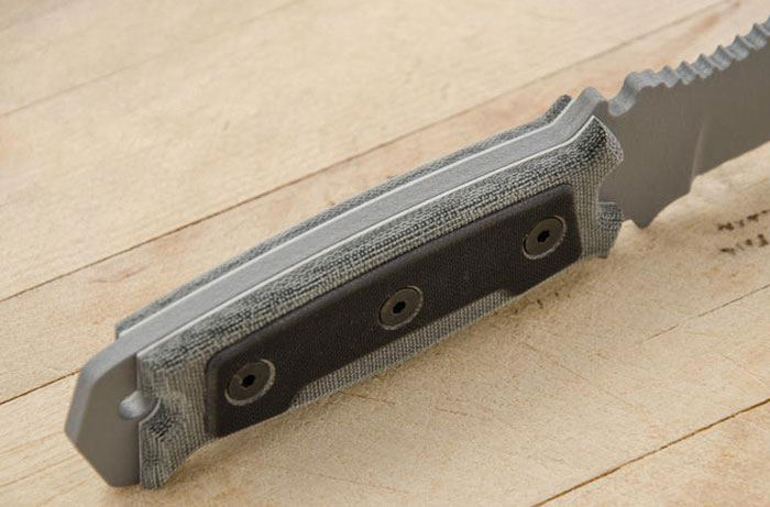 The SKOL is a unique knife loaded with plenty of functional features for the modern survivalist, warrior and hunter alike. The 5.5" carbon steel blade is tough as nails and powder coated for corrosion protection. The jam packed blade is partially serrated for cutting fibrous material and features a guthook behind the clip point for skinning. The scallop-type jimping feels great on the thumb and really makes a difference when sawing. The clip point blade has a sharp point that does well with more detailed work. For the SKOL to be a success, Jared Ogden knew it needed to be super durable and remain useful in adverse conditions. For this reason, he chose Micarta scales with textured G10 inlays; both are lightweight and can withstand rugged use. The full tang extends past the handle to serve as a crusher and allow space for the lanyard hole. Camillus and Jared Ogden went to great lengths to produce a fixed blade that fits into the hunting, survival and combat categories. This knife will excel at everything it does just like Jared himself.