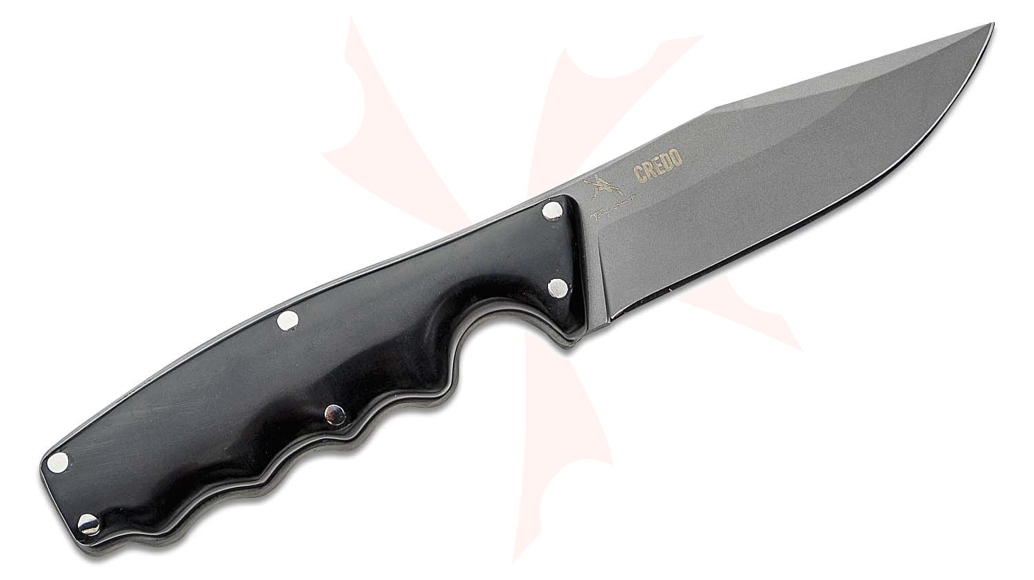 The Condor Credo is a commitment to the spirits of nature. This fixed knife excels and was made for outdoor tasks. Cutting work in the undergrowth showcases a functionality that expresses the Condor credo. The clip point blade is made from 420HC steel and the knife's handle is made from grippy and durable black G10. The knife comes complete with a hand-crafted high-quality leather sheath.