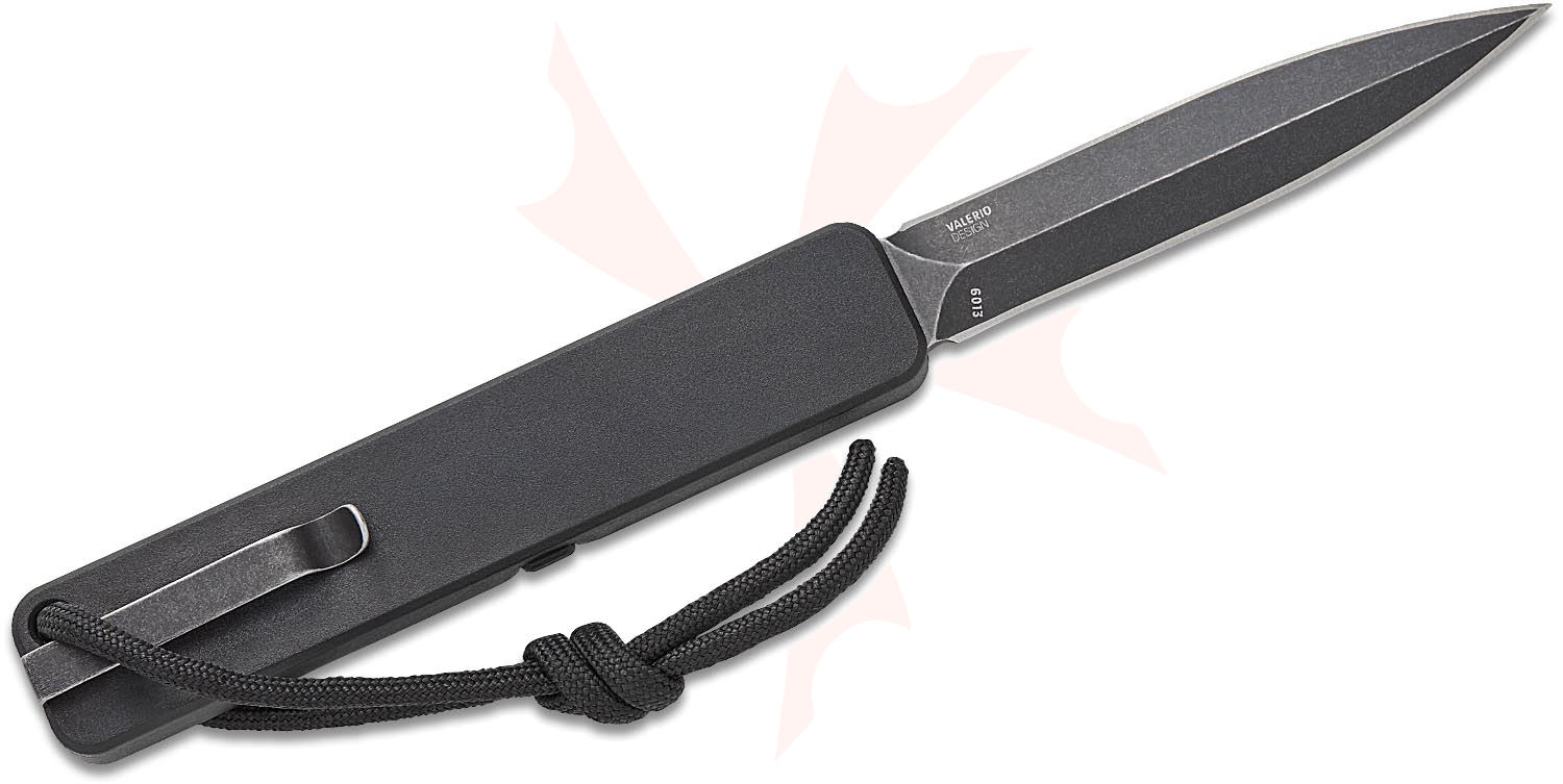Columbia River CRKT 6013 Ted Valerio Gravitic Flip Manual OTF Slide Lock Knife 3.18" Black Stonewashed Double Edge Dagger Blade, Black GRN Handles