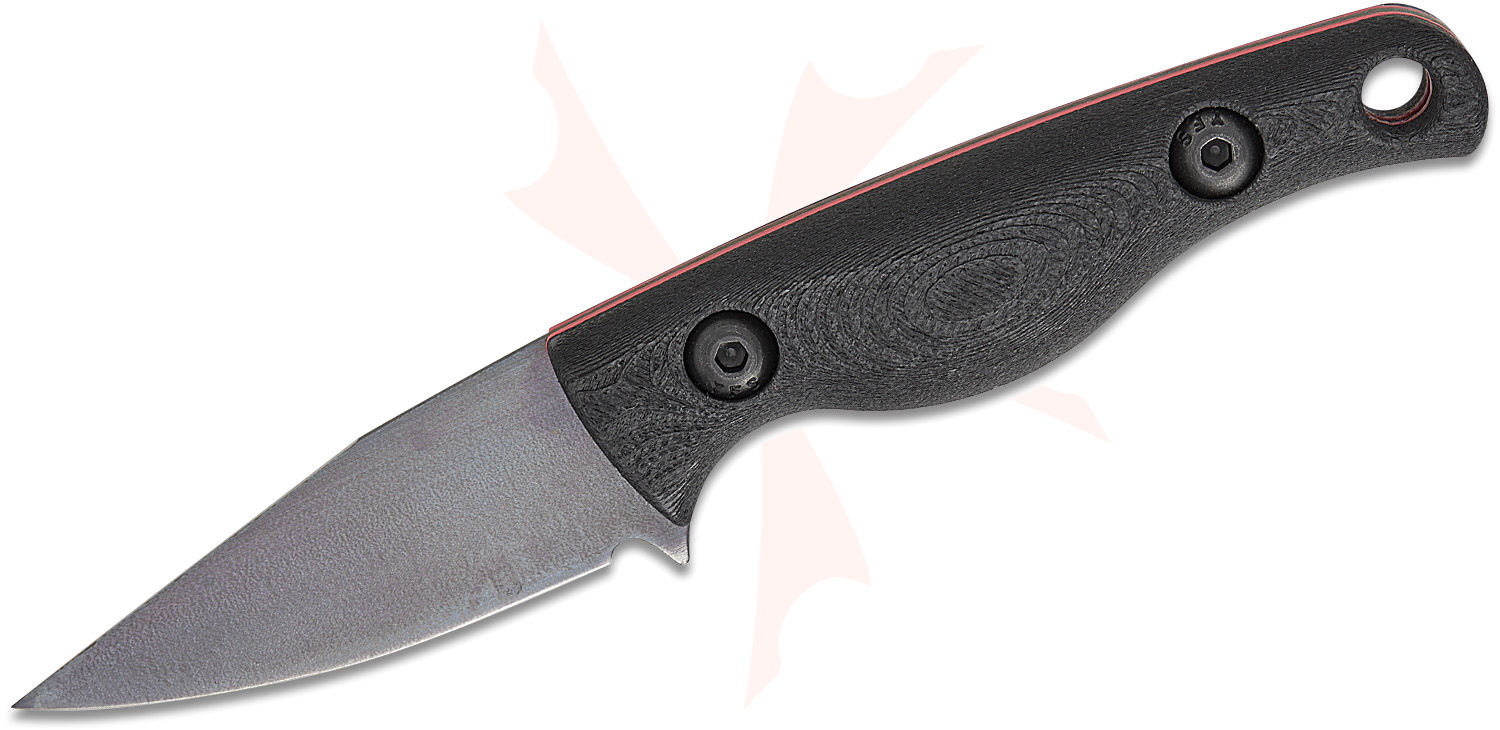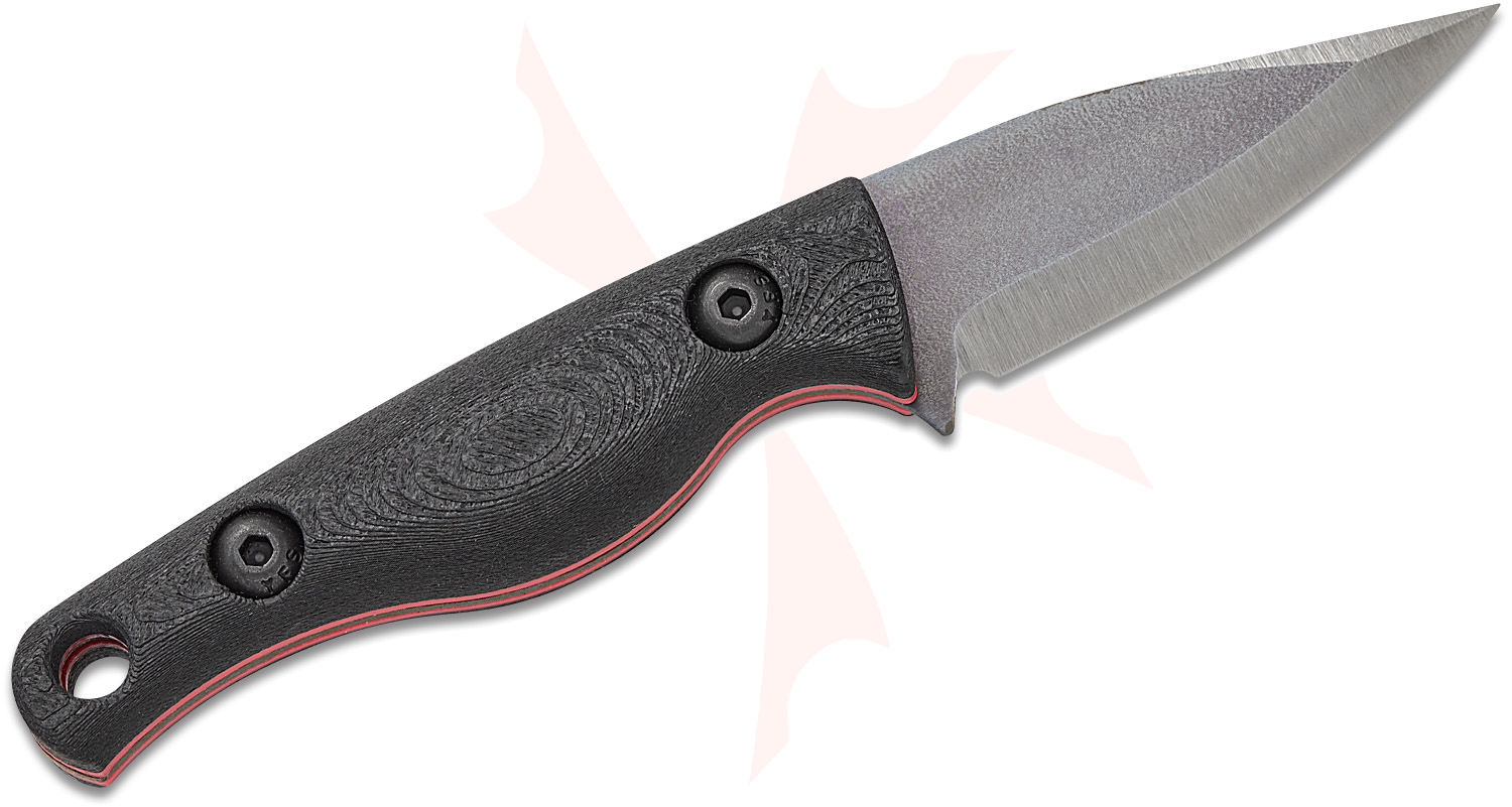 Creely Blades John Gray Customized Minnow Pocket Fixed Blade Knife 2.12" Beta Titanium (Graytanium Z) Chisel Clip Point Blade, Black Carbon Fiber Composite Handles with Red Liners, Kydex Sheath