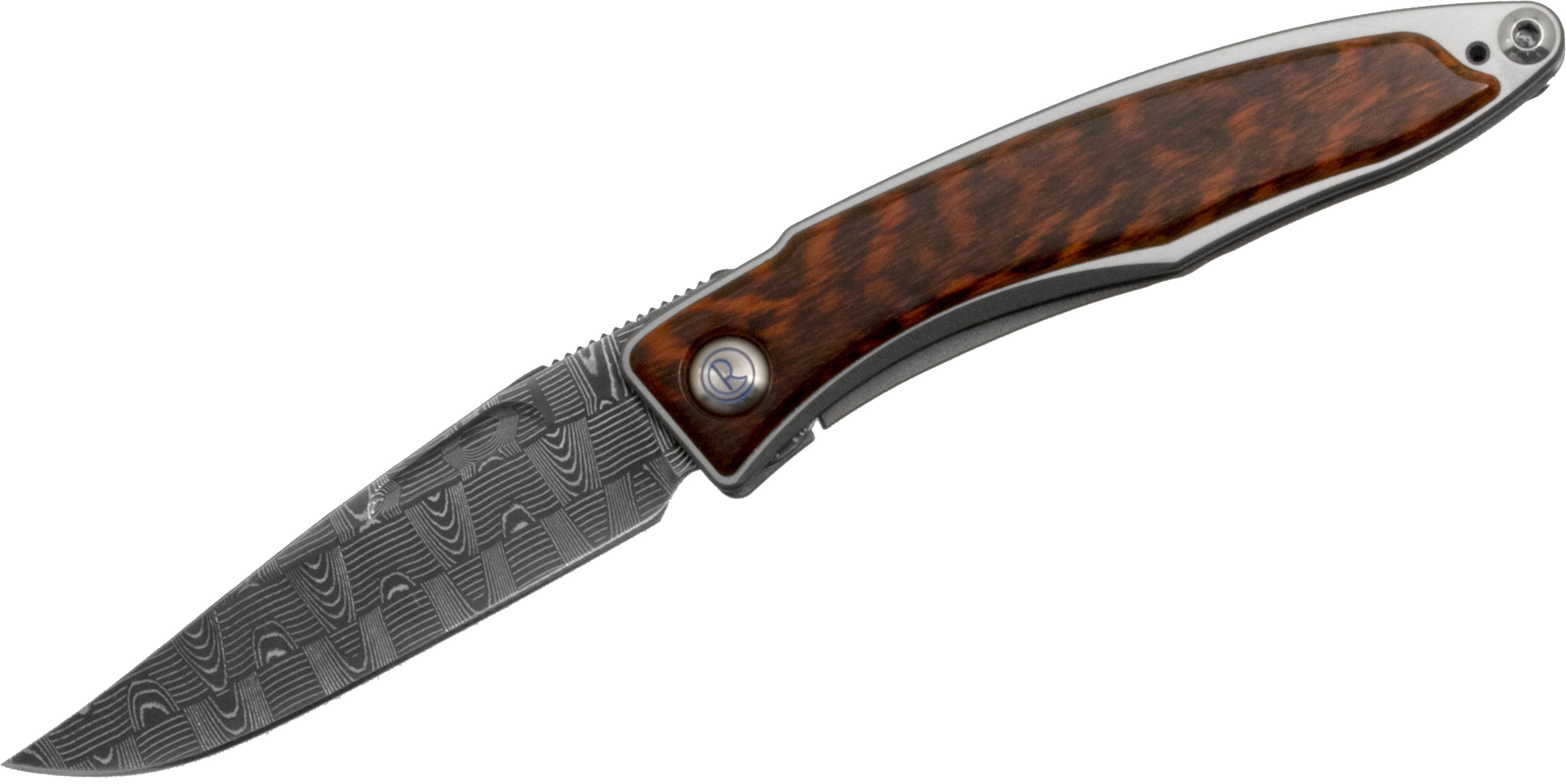 Chris Reeve Mnandi Folding 2.75" Basketweave Damascus Blade, Titanium Handles with Snakewood Inlays, Frame Lock