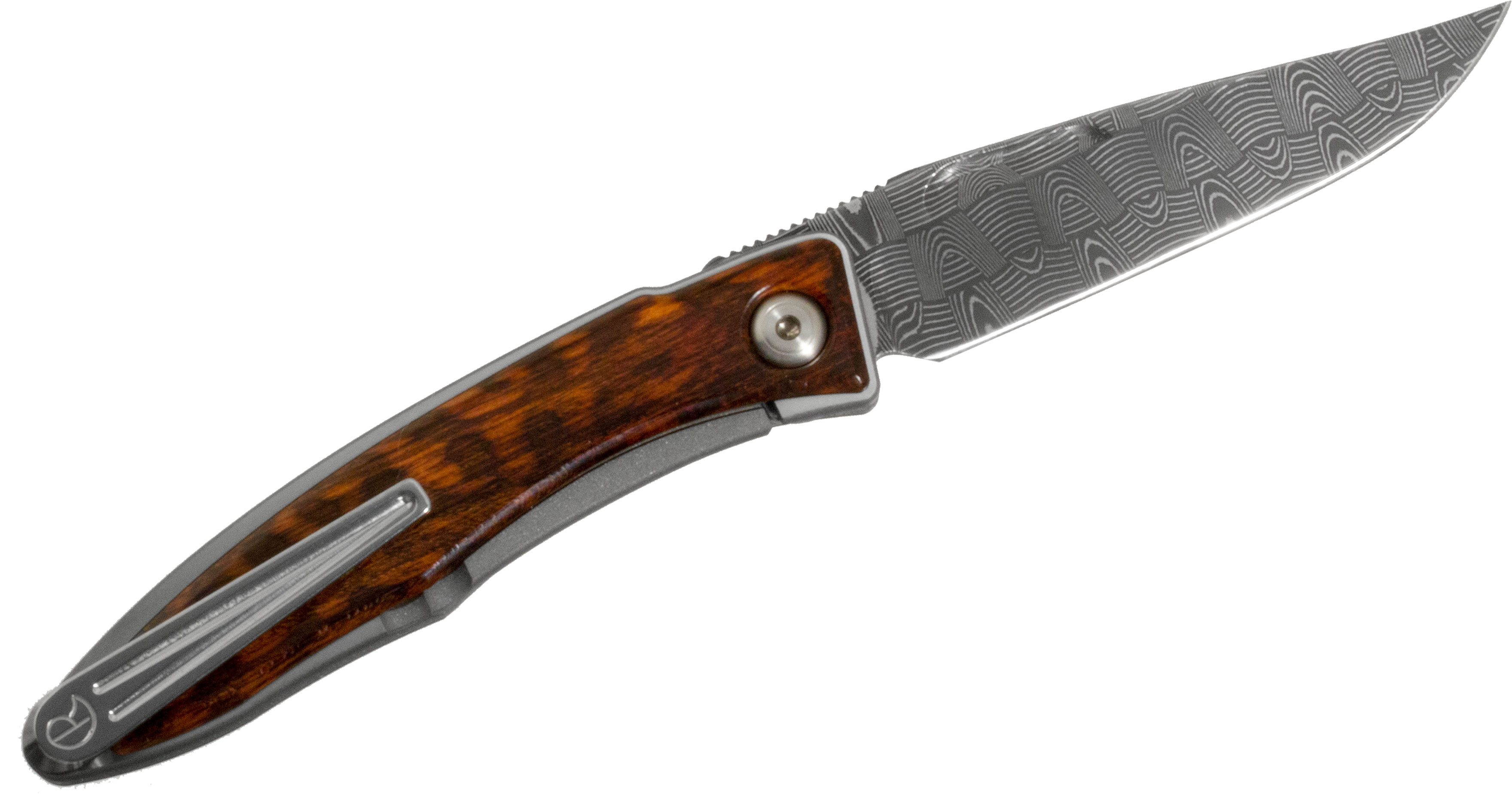 - Handle Material: 6AI4V Titanium with Snakewood Inlays