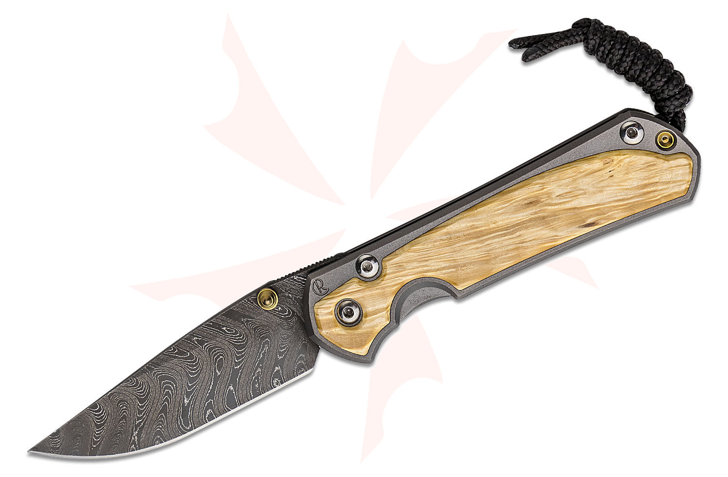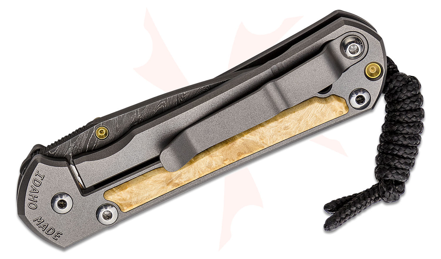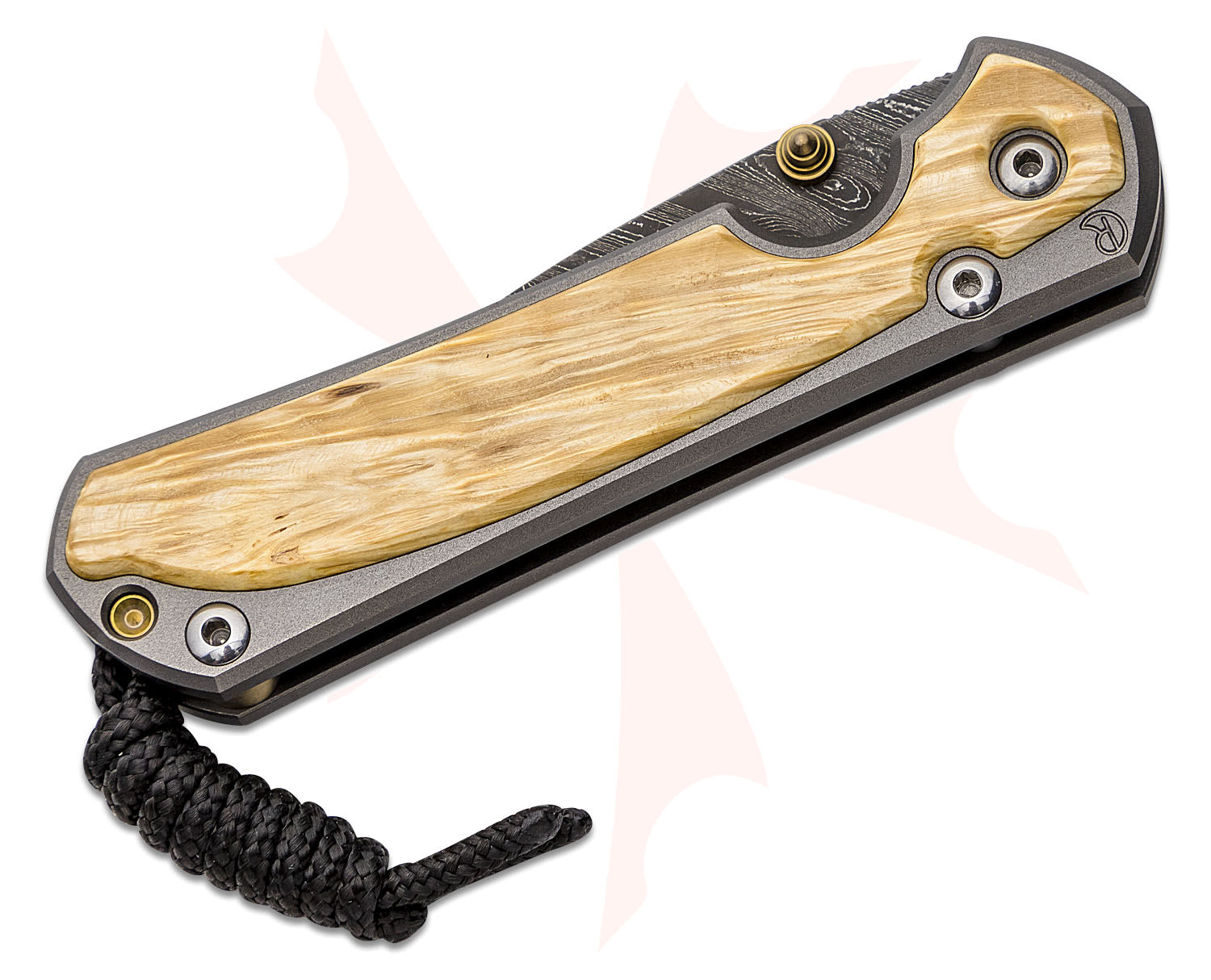 - Handle Material: 6Al4V Titanium with Box Elder Burl Inlays