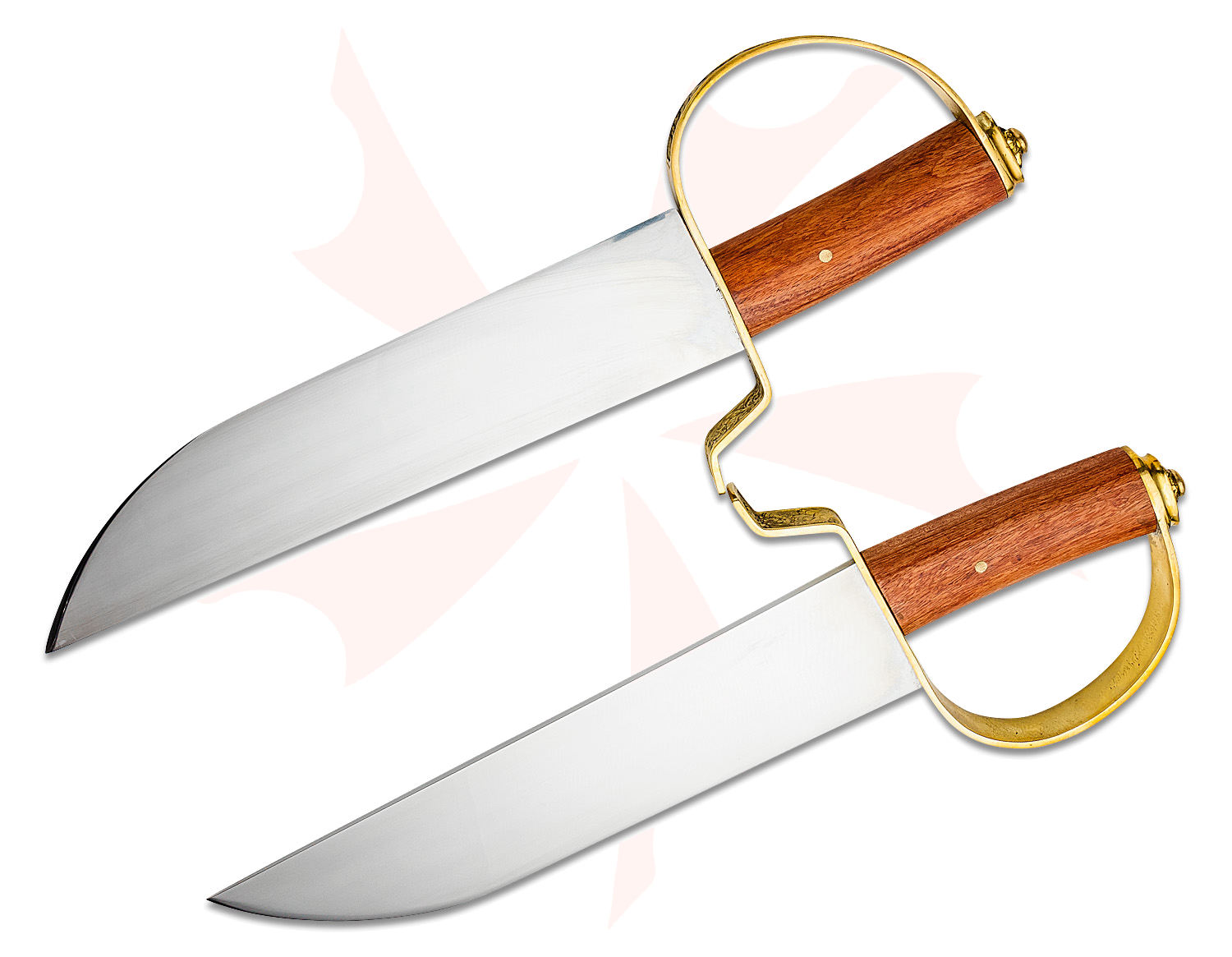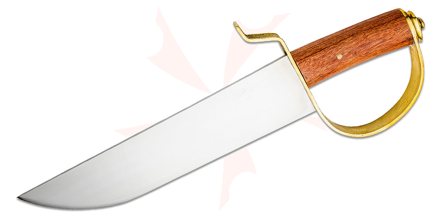 These battle worthy blades are 12" long and 2.5" wide. The handsome slip-proof grip features carefully selected hardwood. The "D" shaped guard has a long forward quillon, so it can both deflect and trap various opposing weapons.