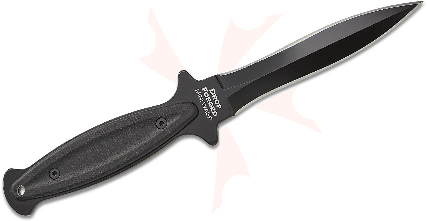 Cold Steel Drop Forged Mini Wasp Fixed Blade Knife 5.5" Black Double-Edge Dagger Blade, Black Micarta Handles, Secure-Ex Sheath - CS-FX-40WSP