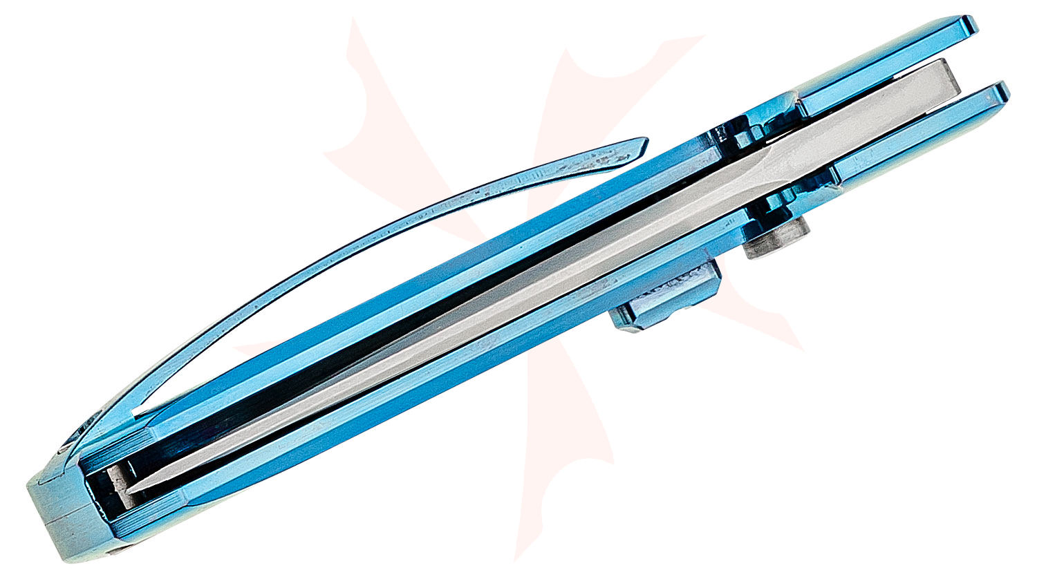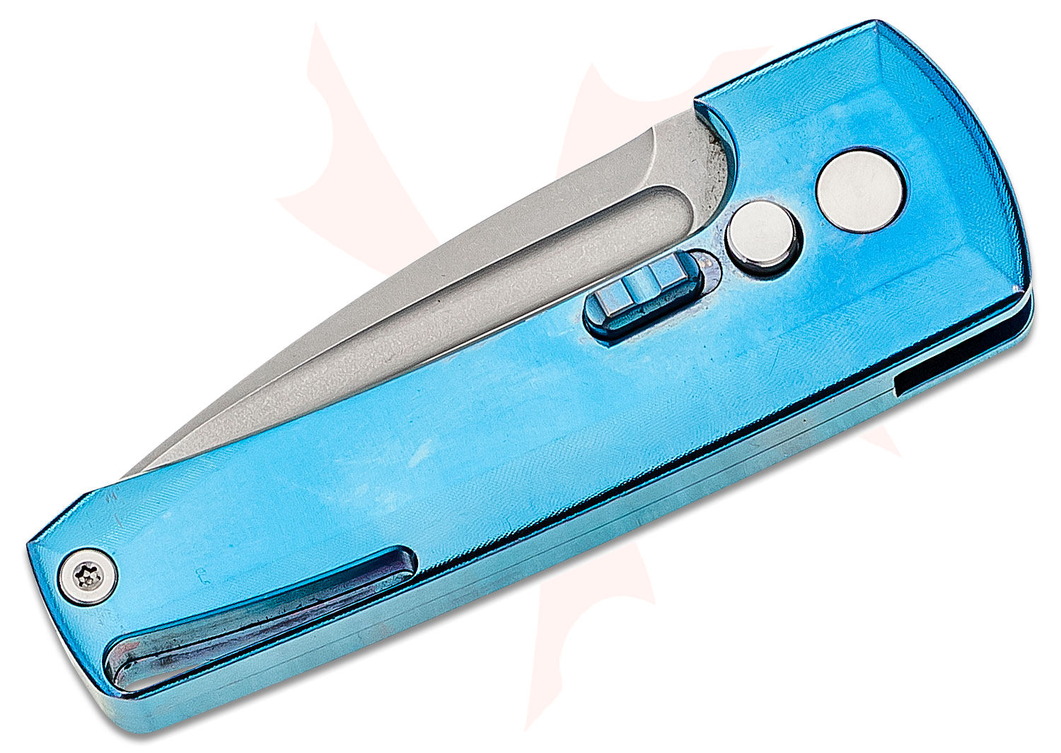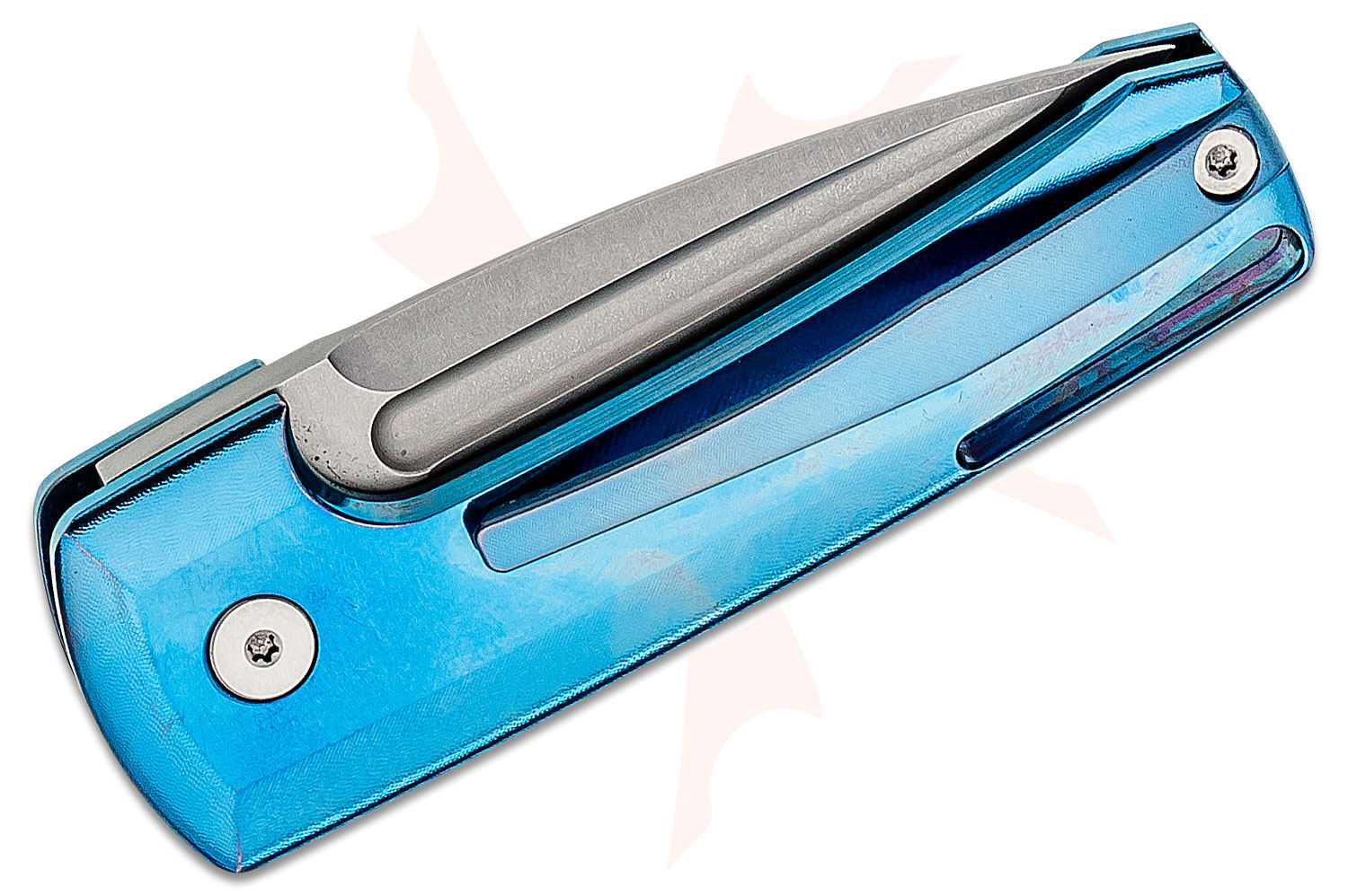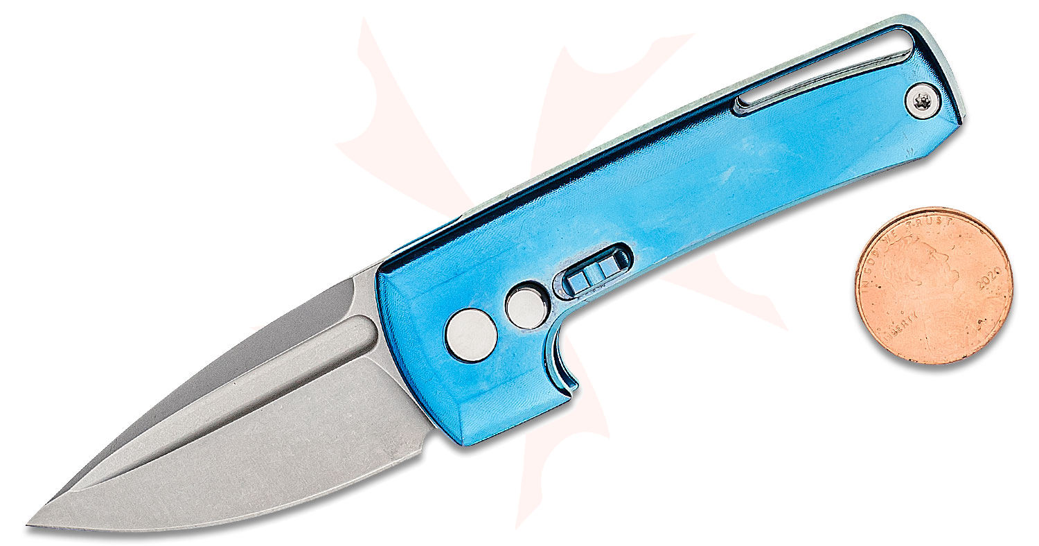D Rocket Designs Mid-Tech Harlock AUTO Knife 2" M390 Stonewashed Drop Point Blade, Blue Titanium Handles