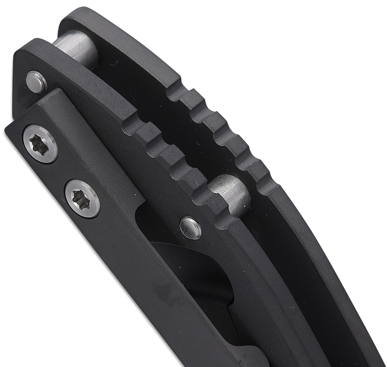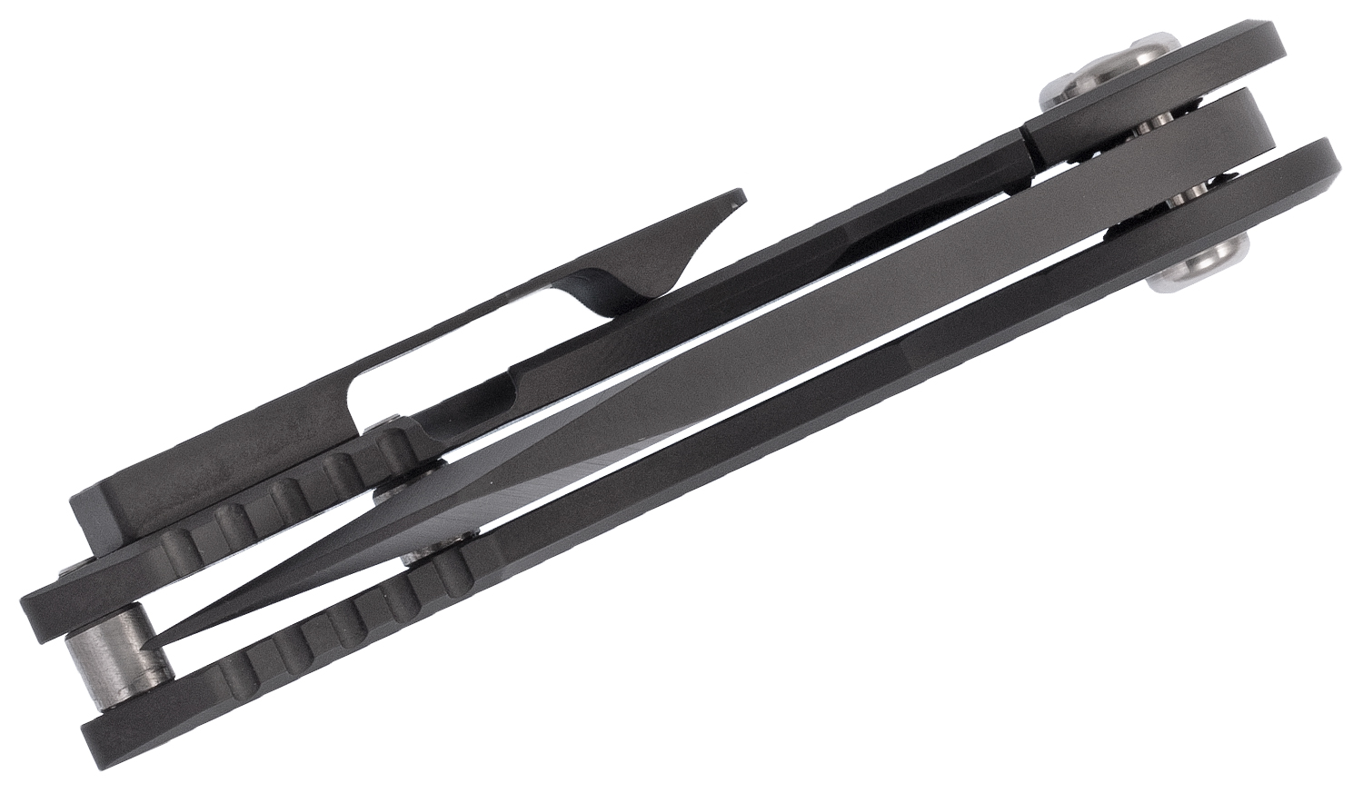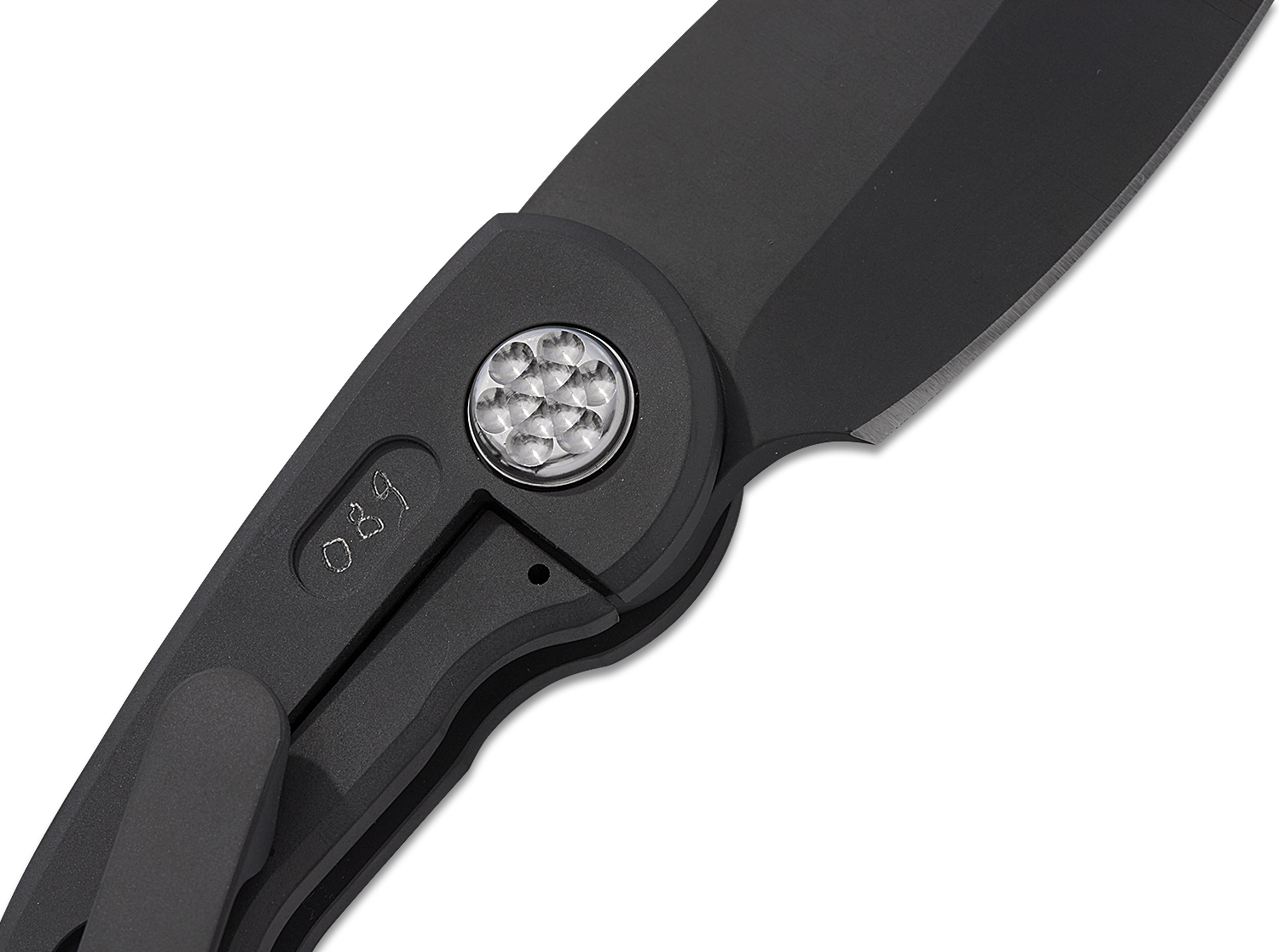 Everything is housed in a PVD-coated pistol grip titanium frame, expertly angled to lock your hand in place and present the point of the blade at the optimum angle for maximum power. The beefy hand-ground CPM-154 clip point blade takes advantage that angle. With only a slight amount of belly, the blade performs a lot like a Wharncliffe for typical jobs.