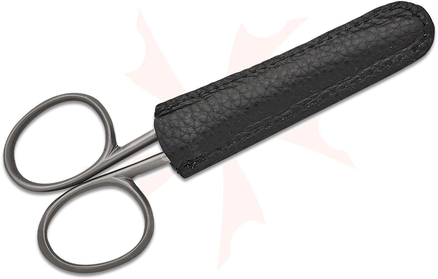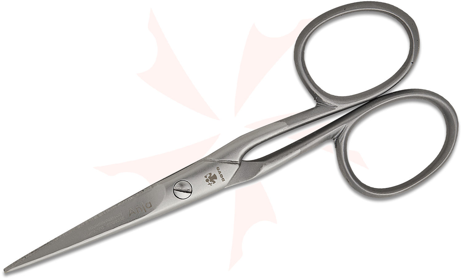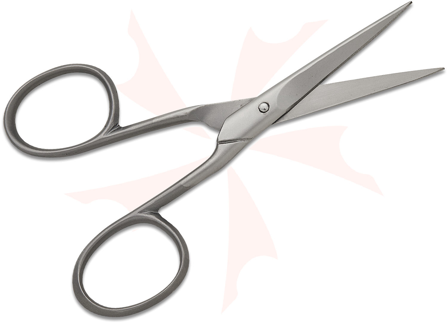 These DOVO embroidery scissors have a satin finish and measure 4" overall. They are made by Solingen master grinders under the most rigid control from the finest, hot-forged special steel. Each pair comes with a leather sheath.