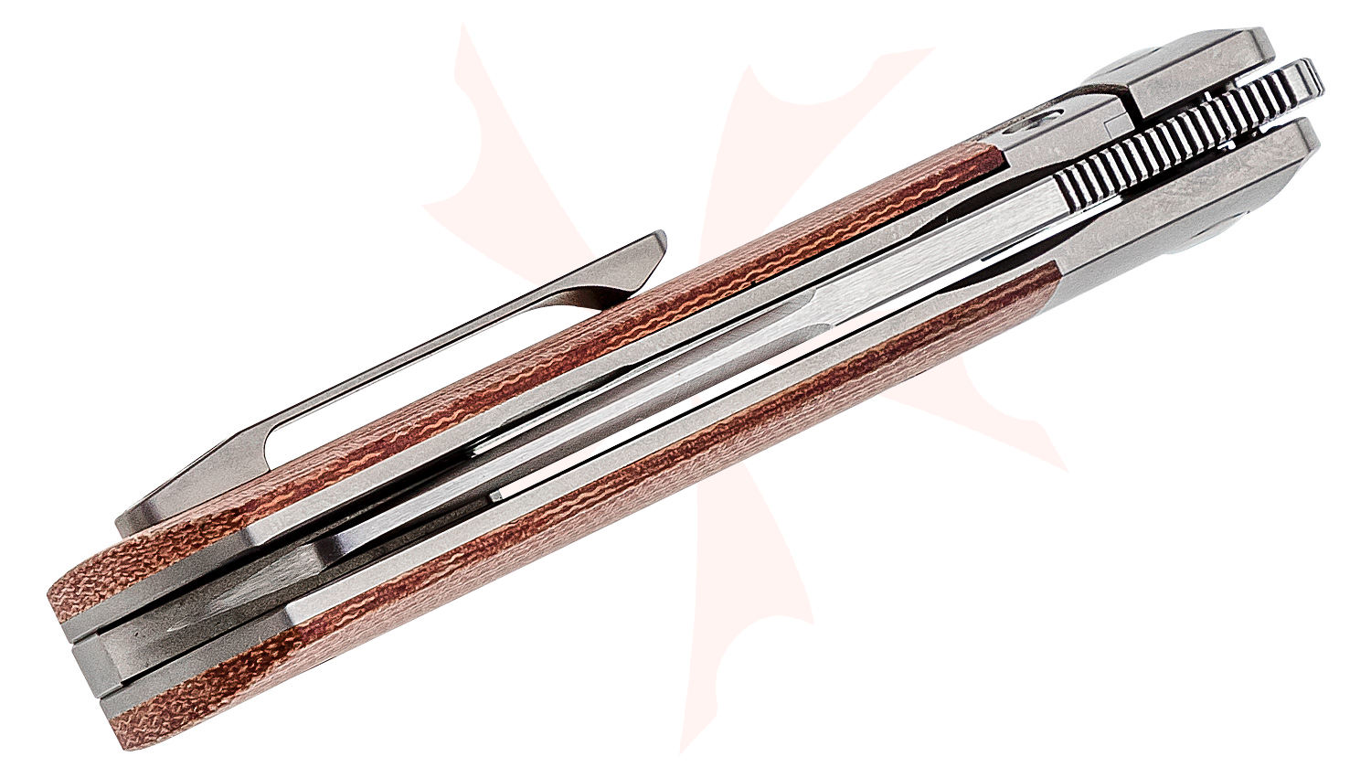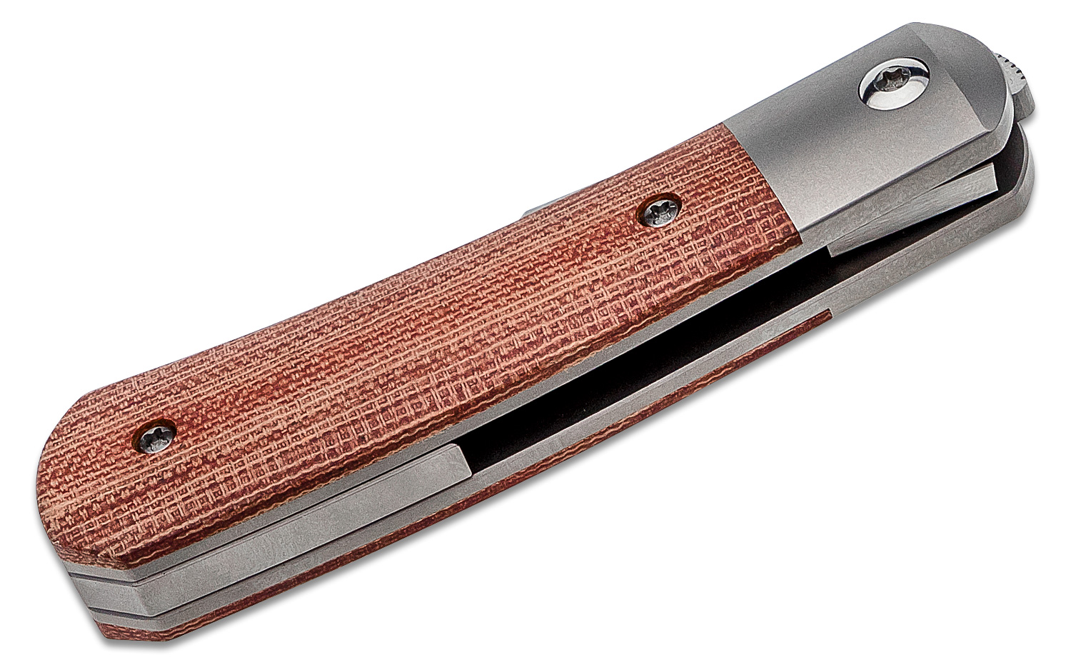 - Handle Material: Burnt Orange Canvas Micarta with Titanium Bolsters