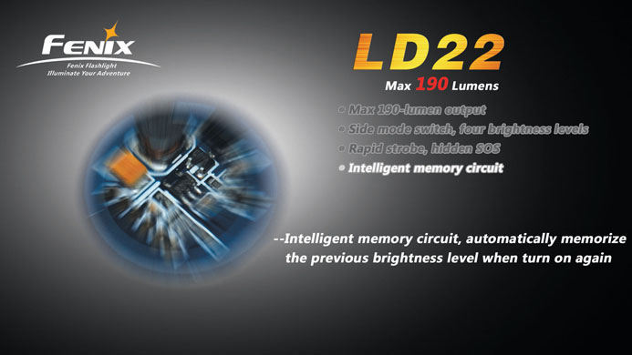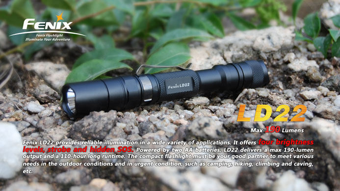 The Fenix Model LD22 provides reliable illumination in a wide variety of applications. With four brightness levels and two flashing modes, LD22 employs a side mode switch for quick changes. Powered by readily-available AA batteries, this compact flashlight showcases the durability and power management for which Fenix is recognized around the world.