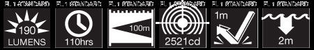 - Max Bright: 190 lumens (2 hr 26 min runtime)