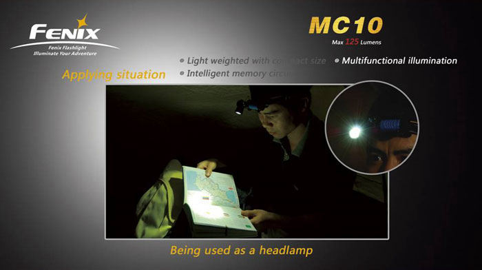 The Anglelight MC10 can be used as a headlamp with the Fenix Headband!