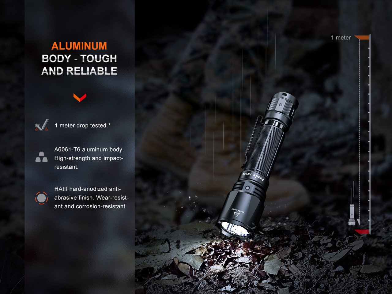 Crafted with precision and durability in mind, the Fenix TK11R is built to withstand the toughest conditions. Featuring an IP68 waterproof rating, 1-meter drop resistance, and an impact-resistant A6061-T6 aluminum body, this flashlight is your dependable companion in any environment. Its HAIII hard-anodized anti-abrasive finish ensures longevity, keeping your flashlight looking as good as new even after prolonged use. With the inclusion of a rechargeable 18650 battery, Advanced Pulse-Frequency (APF) technology, and intelligent overheat protection, Fenix reaffirms its commitment to reliability and safety.