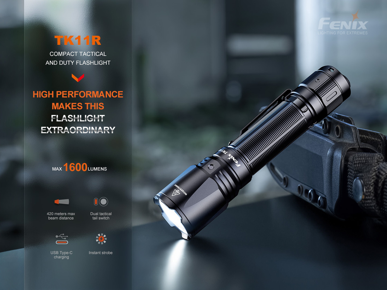 Fenix TK11 High Performance Tactical Rechargeable LED Flashlight, Black, 1600 Max Lumens - FX-TK11R