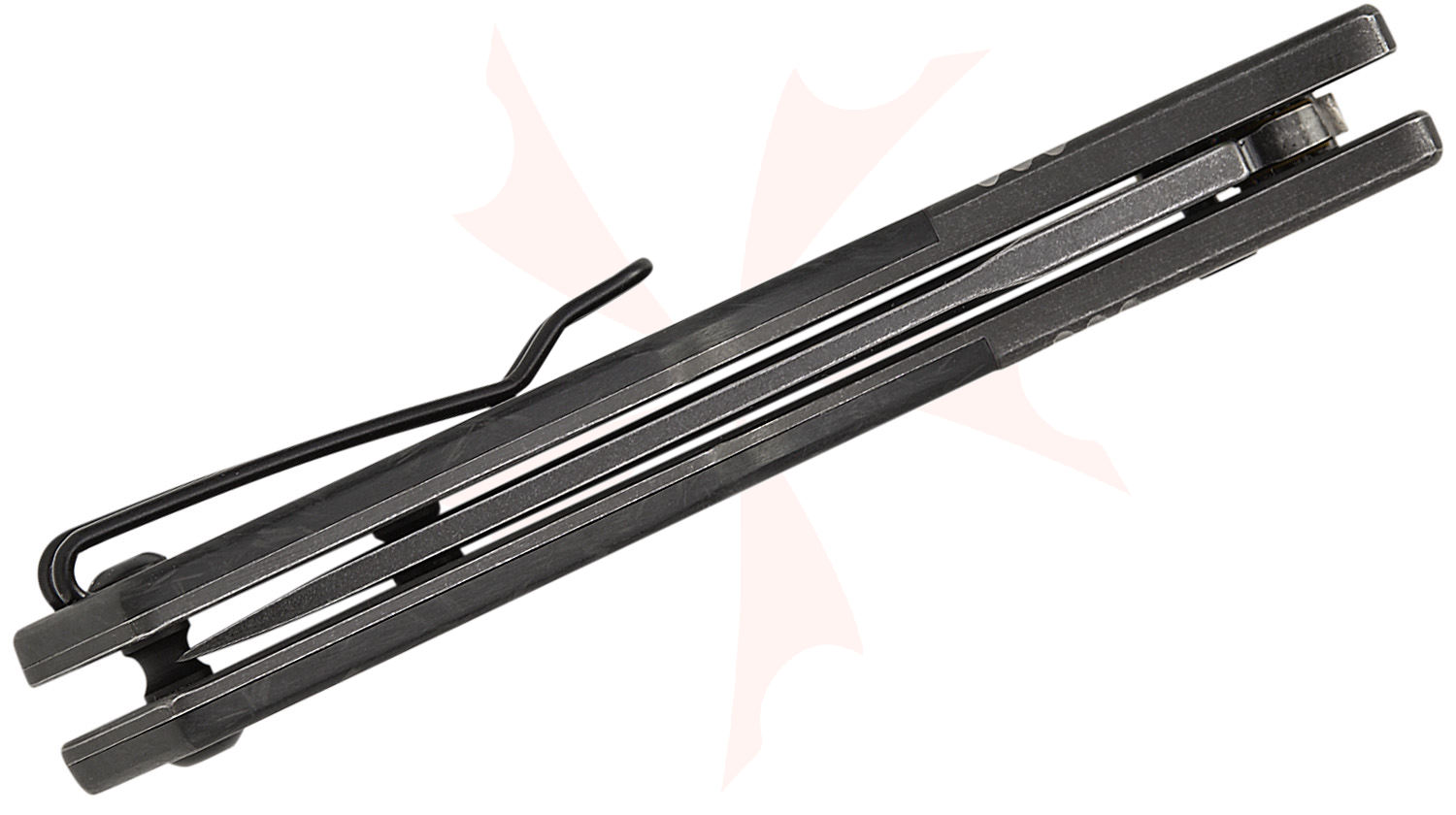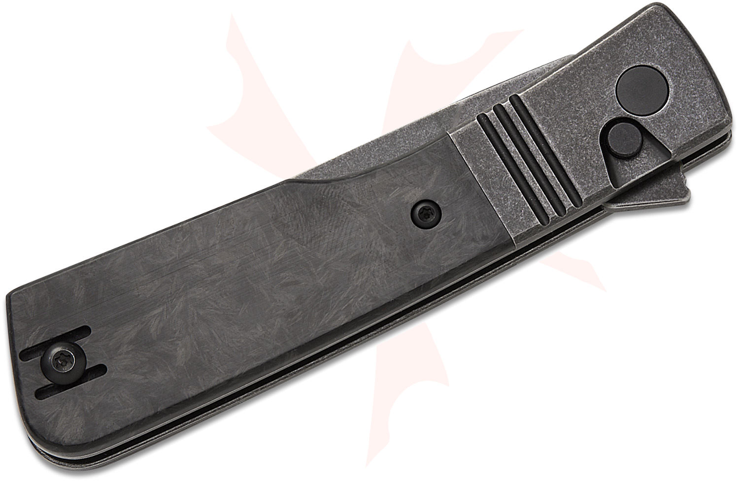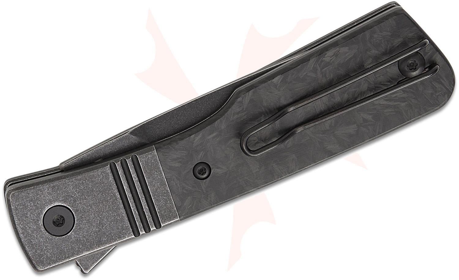 - Handle Material: Black Stonewashed Bolstered Stainless Steel with Shredded Carbon Fiber Scales