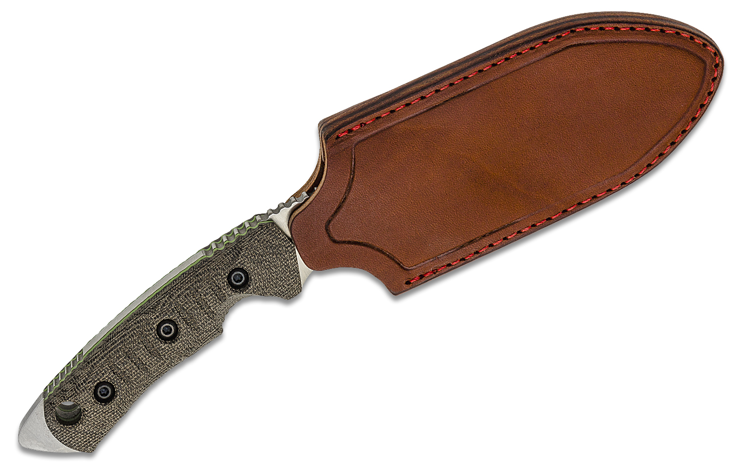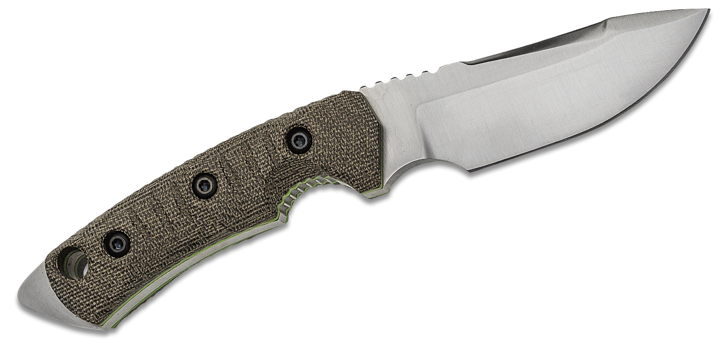 FOBOS Knives Tier 1 Mini Fixed Blade Knife 3.94" CPM-154 Satin Drop Point, OD Green Canvas Micarta w/ Green Liners, Leather Sheath - TIER 1-MINI