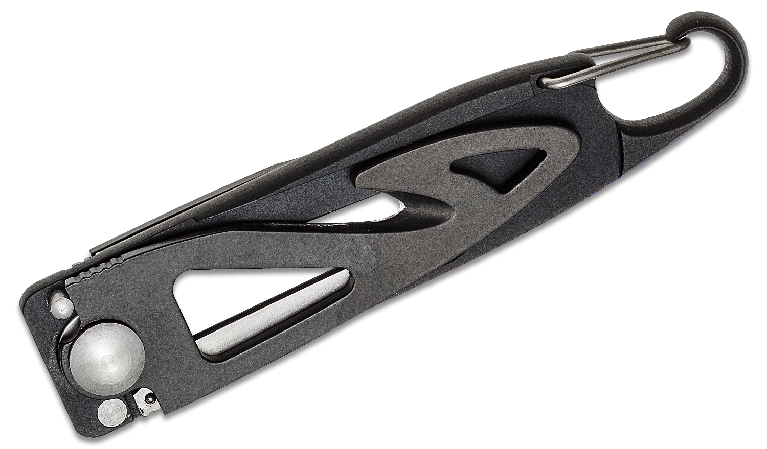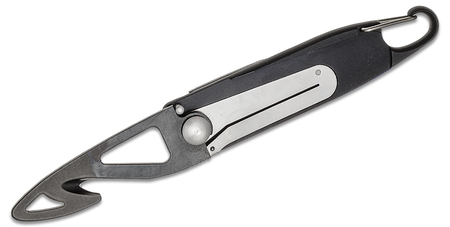 The Fox Twice is a lightweight option for anyone looking functional and affordable rescue knife. It comes with a folding blade on either side of the black aluminum handle. It has one basic drop point blade for a variety of tasks, and a strap cutter with a recessed cutting edge. The handle also has a convenient carabiner style clip to carry it on keyring or lanyard. The best part is, its lightweight construction makes it easy and convenient to transport that way.