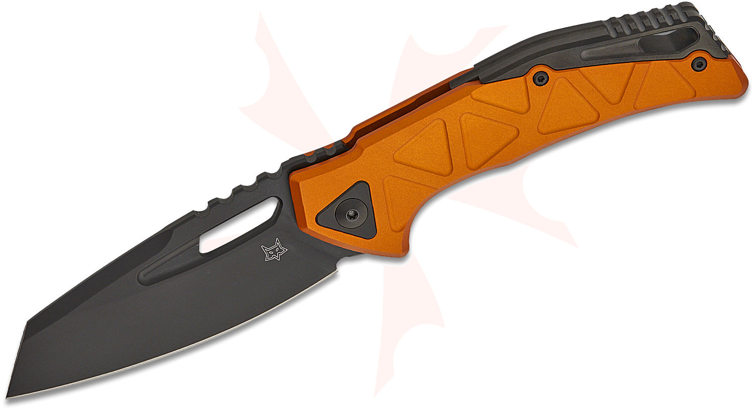 The Fox FX-552 Chronos flipper knife combines premium materials and cutting-edge design for top-tier performance. Featuring a 3.54" reverse tanto blade made from CPM-MagnaCut stainless steel, this knife delivers excellent edge retention and durability. The aluminum handle provides a striking look and ergonomic grip, while the frame lock ensures secure blade deployment. Weighing 4.52 oz. and offering a tip-up right carry pocket clip, the FX-552 is an ideal EDC companion. Designed by Stefan Merk and crafted in Italy, this knife is built for precision and reliability. This model features orange aluminum handles and a black PVD blade finish.